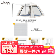JEEP天幕帐篷户外露营帐篷全自动速开便捷天幕二合一防晒家庭野营装备 大号米白银胶款套餐1