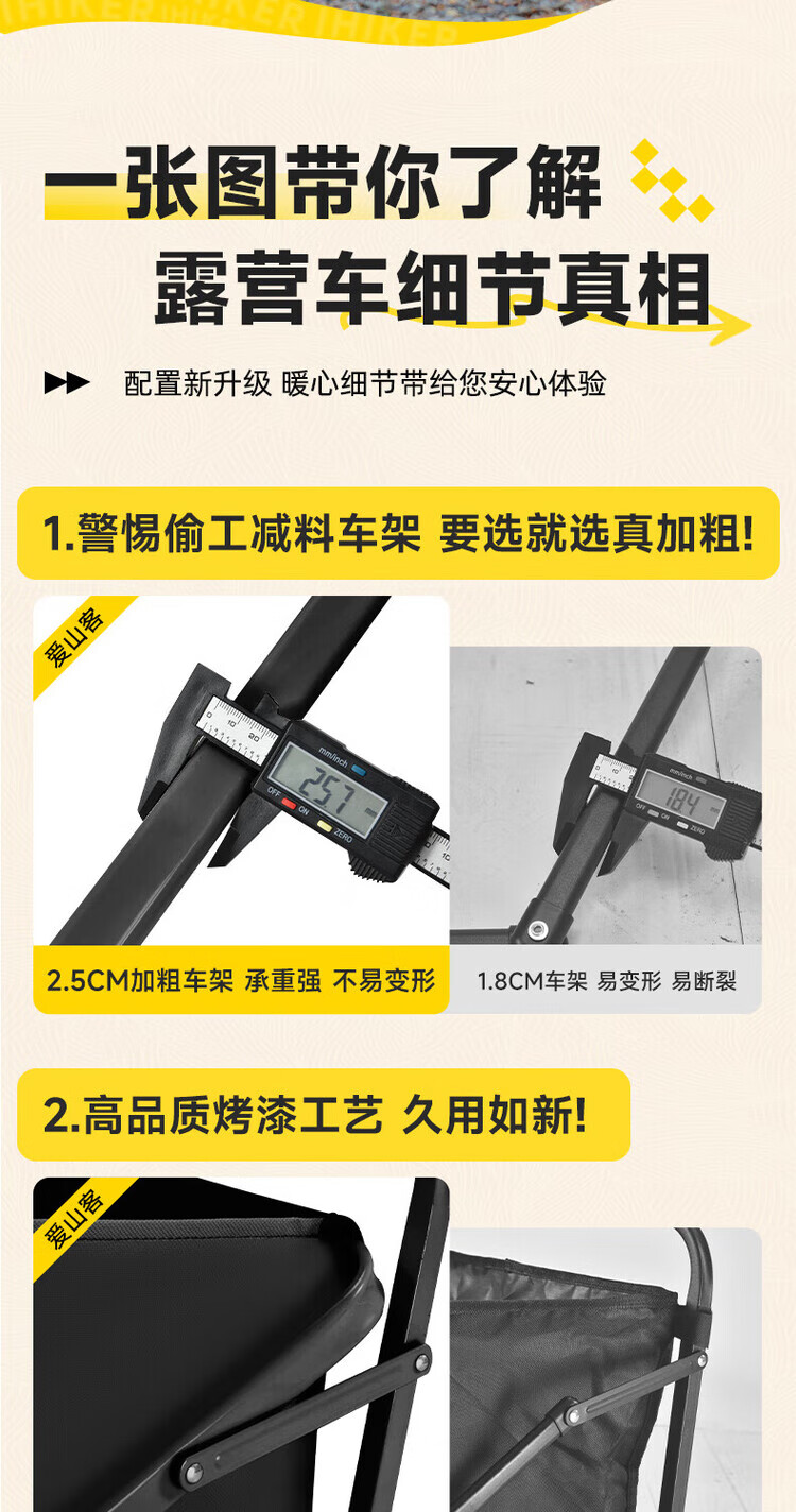 质感还不错呢,第一次买露营车,质量不错,体验很好,下次再回购一个桌板,露营没桌板不行呀。