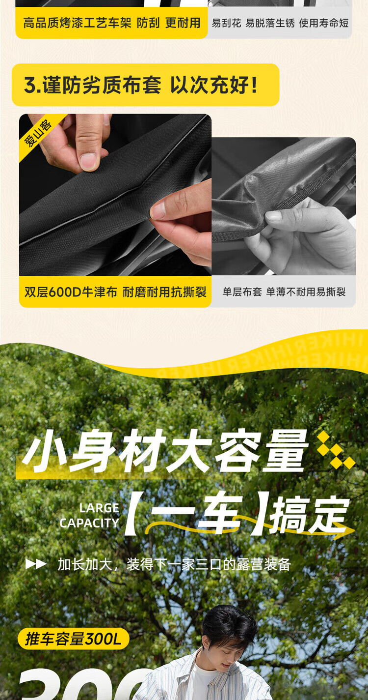 爱山客露营车折叠推车户外装备小推车营地手拉车旅行拖车买菜车拉快递车 350L 卡其色-双刹坦克轮+后开模式