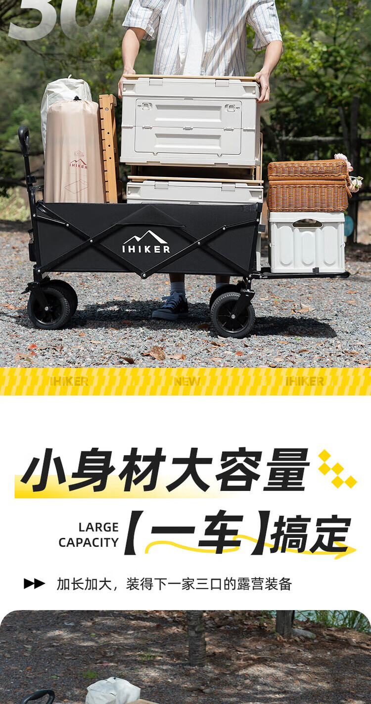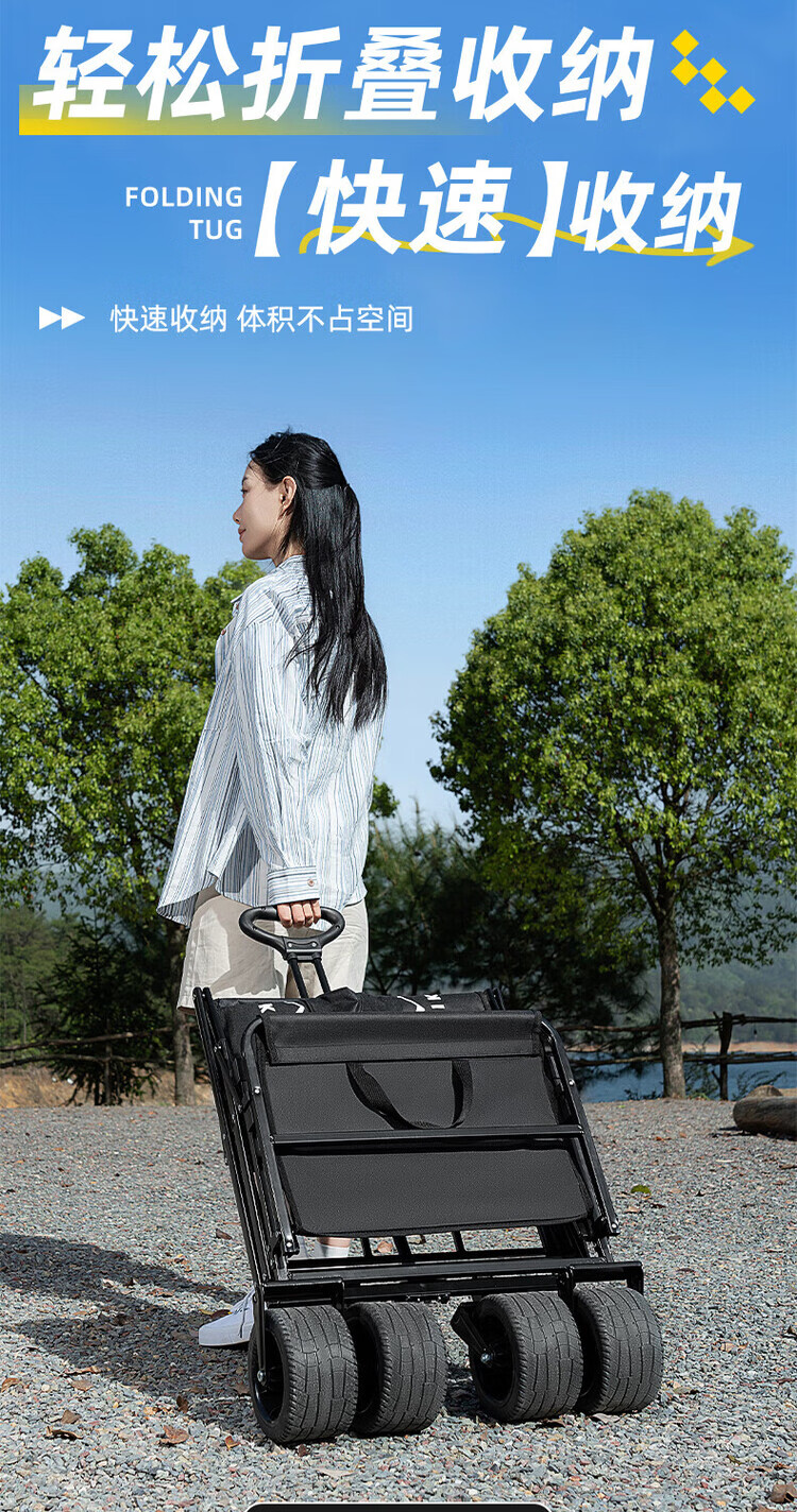 出色鸟Greatbird大型户外露营车 小推车野营便携折叠手拉车 后开儿童可躺露营装备 曜石黑 【双刹坦克轮宽10cm】 300L