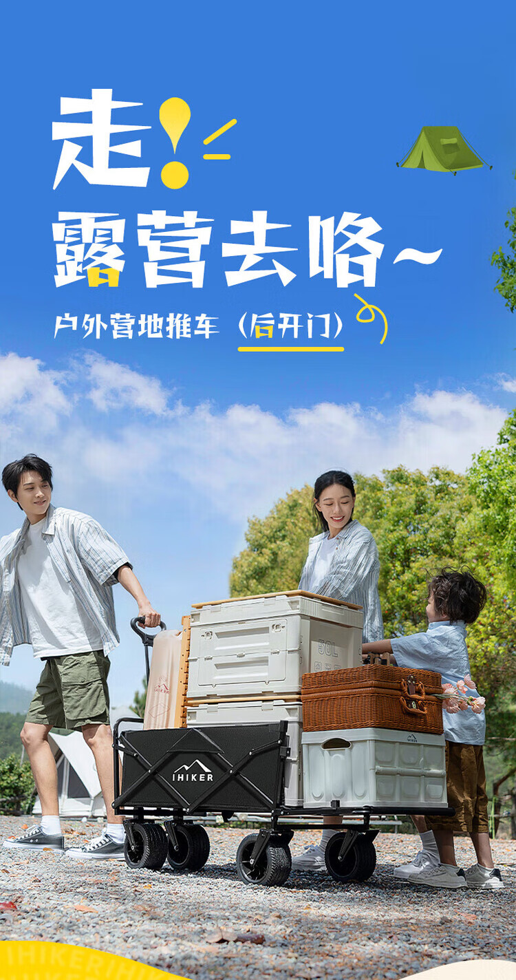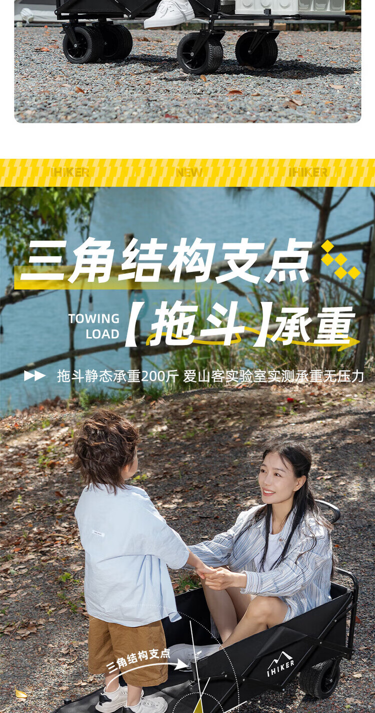 疆屿露营车野营户外折叠手推车野餐摆摊拖斗车儿童可躺聚拢营地车