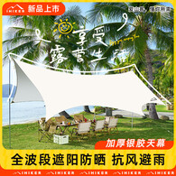爱山客八角防晒天幕帐篷全套露营装备野营超大遮阳棚套装银胶蝶形天幕 10㎡银胶天幕-白【建议2-3人】