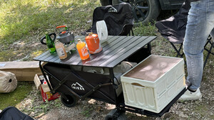 Aoran 露营推车可折叠户外手推野餐车营地拖车拉杆小拉车桌板野营车 咖色【露营套餐】配置如图