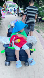 太实用了,折叠还特方便,孩子自己也可以折叠,出远门游玩一定要带着它,不然这么多东西用手拿太累了,孩子走累了也可以坐上去,很扎实的,买它