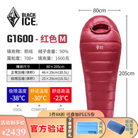 黑冰(BLACKICE)新款鹅绒睡袋G400/G700/G1000户外露营防寒木乃伊式羽绒睡袋成人 G1600红色M码(新标准,全新升级)