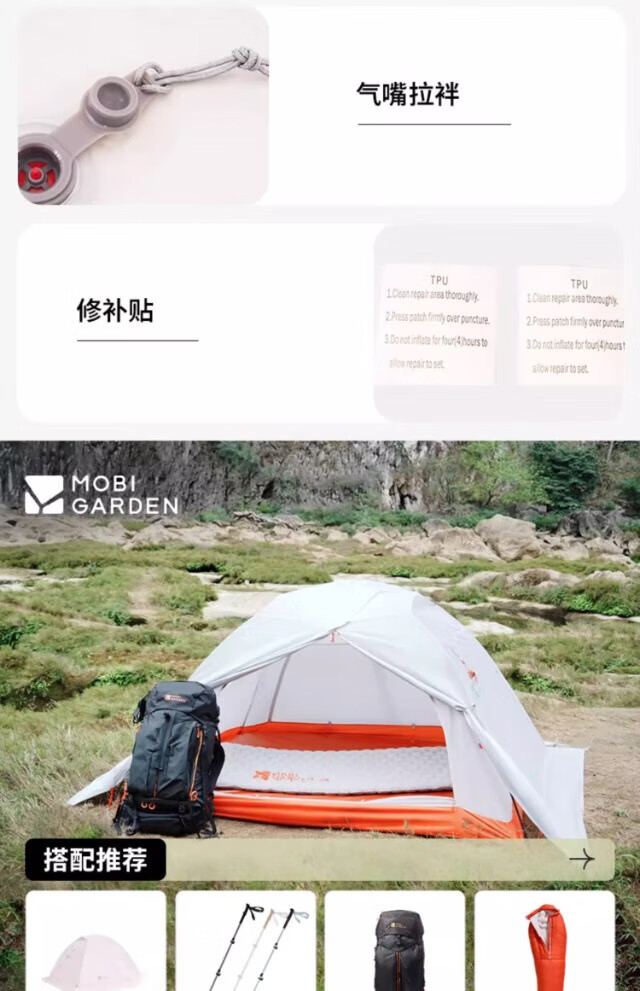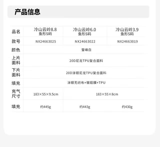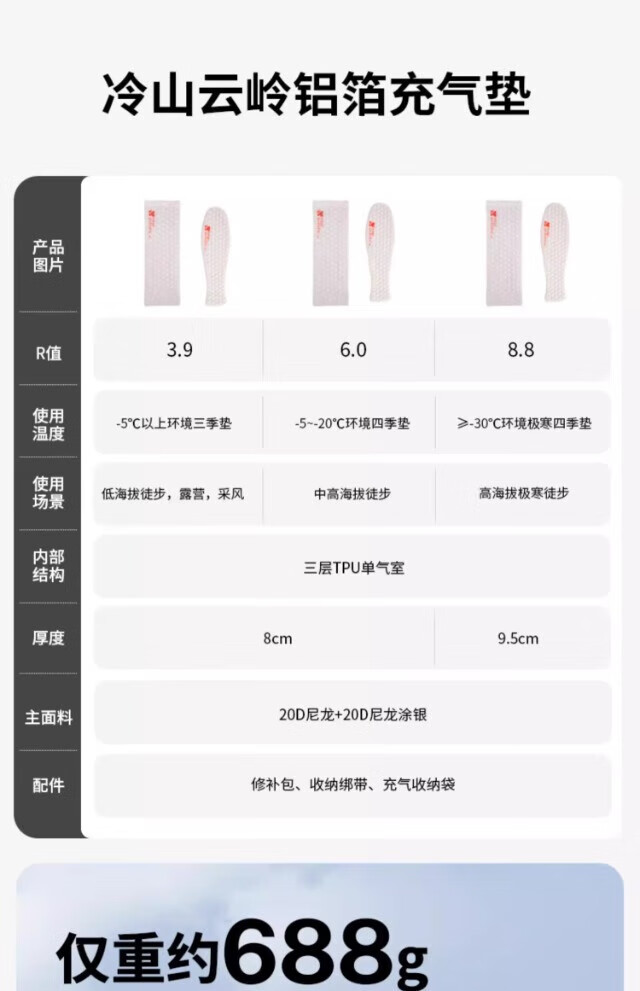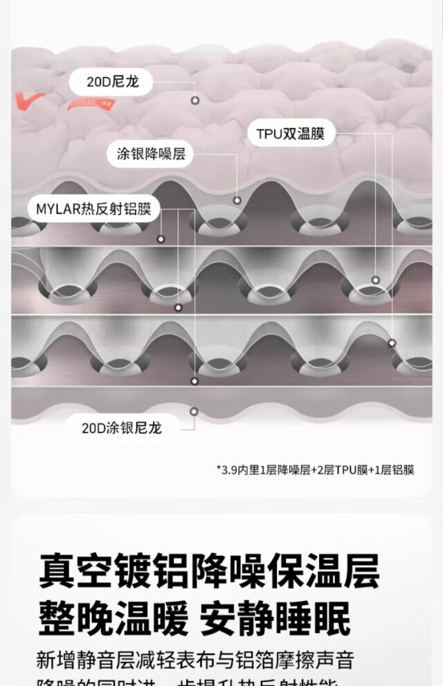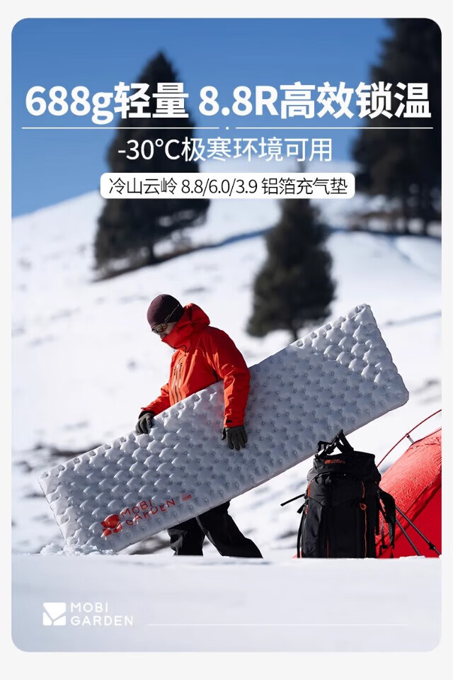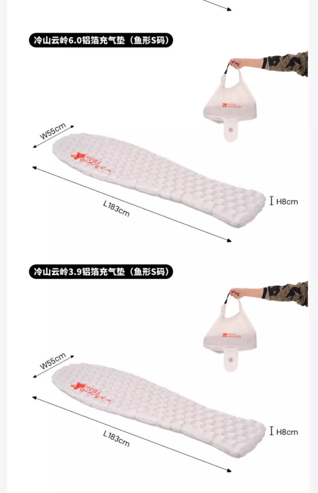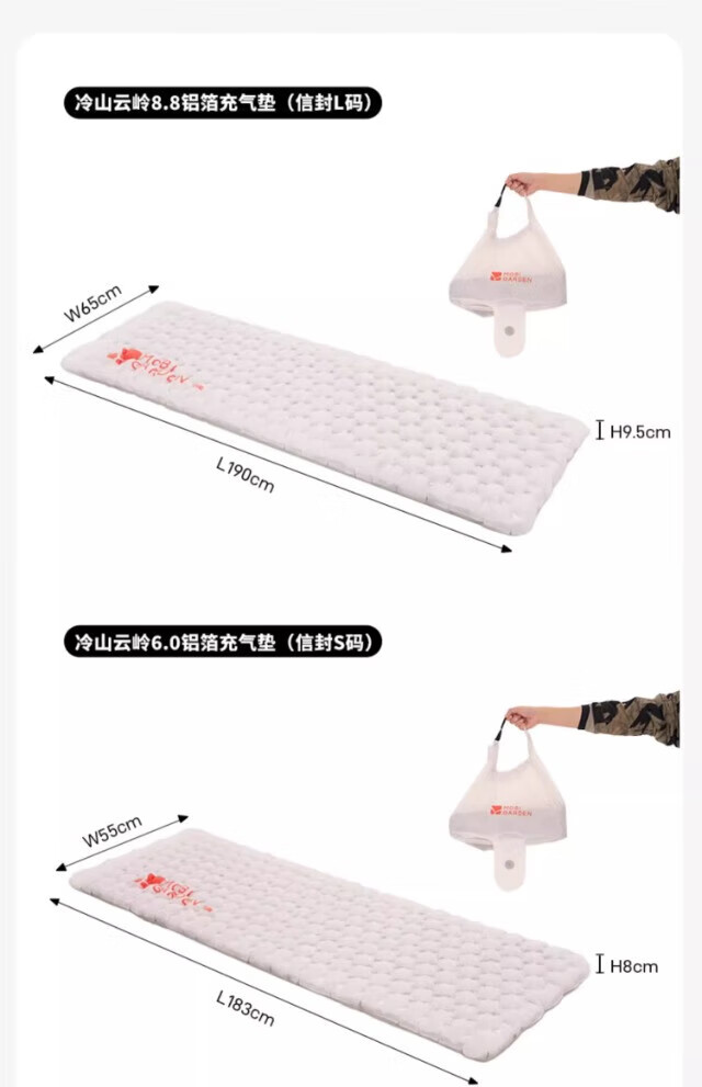 牧高笛冷山雪翎充气垫 户外徒步露营超轻铝膜充气垫加高防潮垫 NX24663026-8.8R值(信封L码)