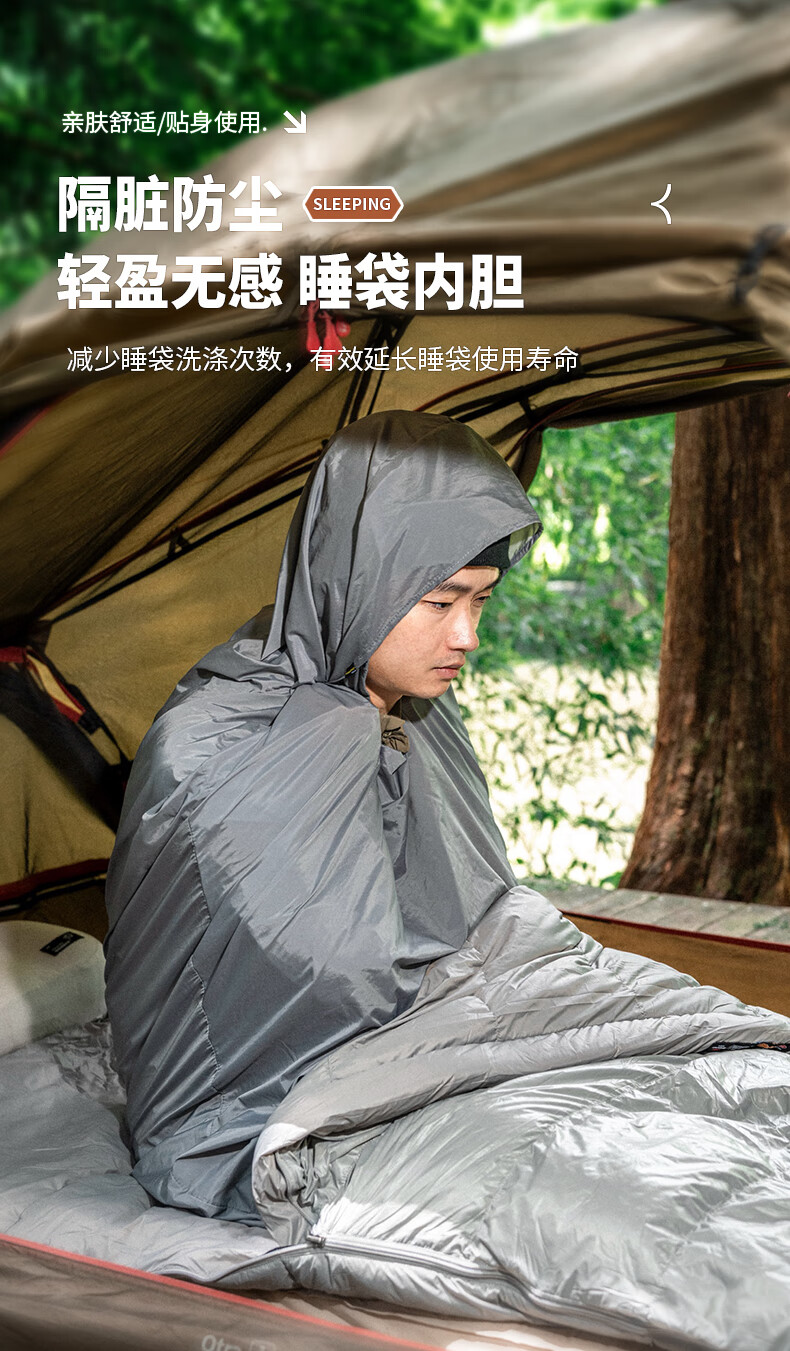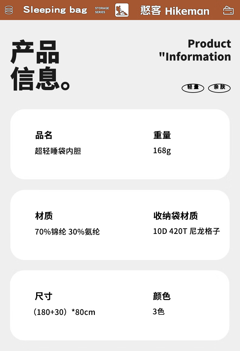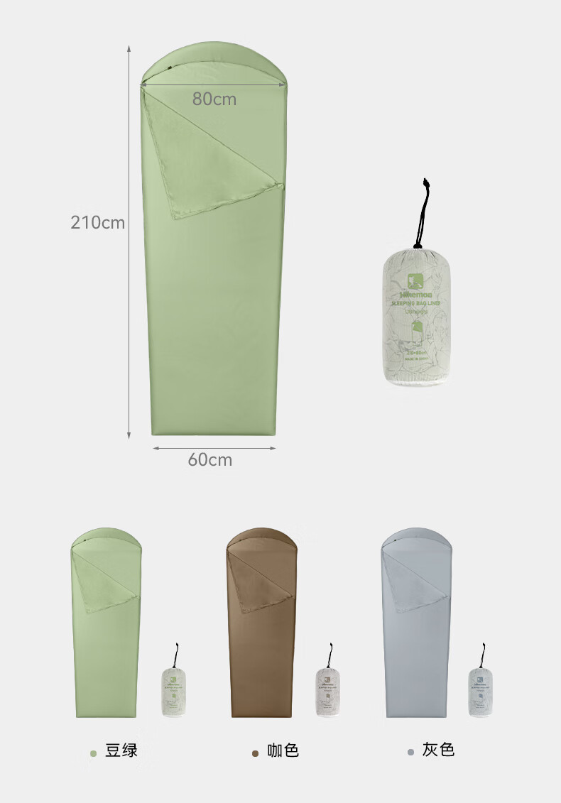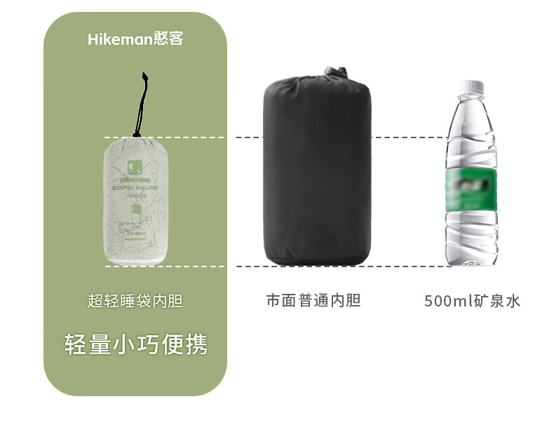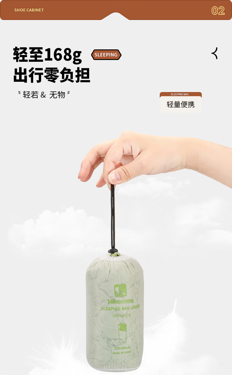 HIKEMAN户外隔脏睡袋轻量化露营徒步超轻薄款弹力内胆酒店旅行便携式 豆绿【168g超轻/便携/抑菌】