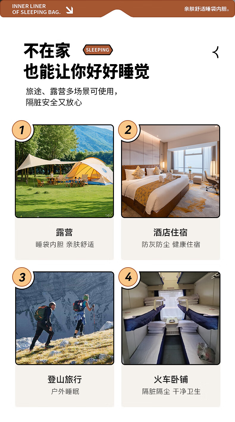 安丹迪(Adandyish) 纯棉隔脏睡袋床单 四季旅行户外露营宾馆酒店便携隔脏睡袋 不分梨 双人180*210cm