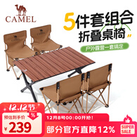 骆驼户外折叠桌椅套装5件套蛋卷桌便携露营椅子装备野餐2025 胡桃色/琥珀棕-176BH18010