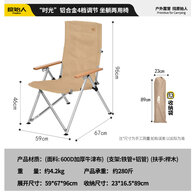 原始人户外折叠椅躺椅露营高背海狗椅午休椅钓鱼沙滩椅航空铝便携 【卡其】铝合金高背坐躺两用椅