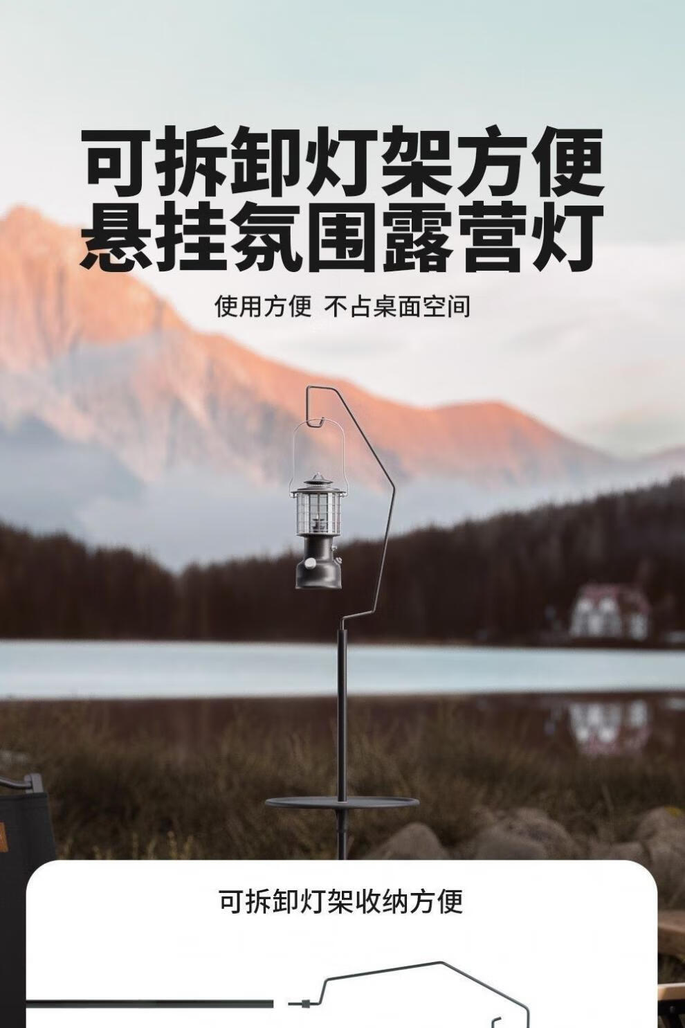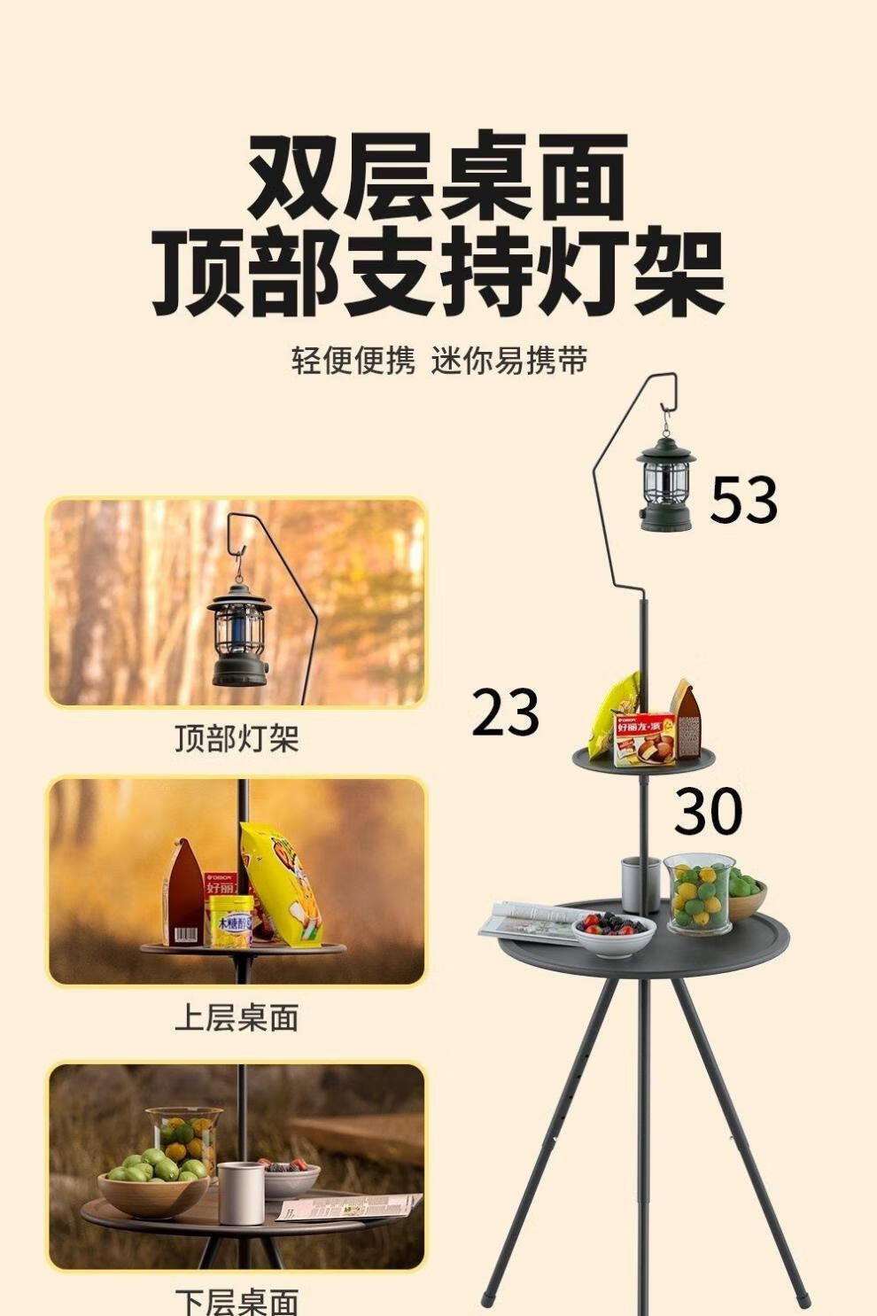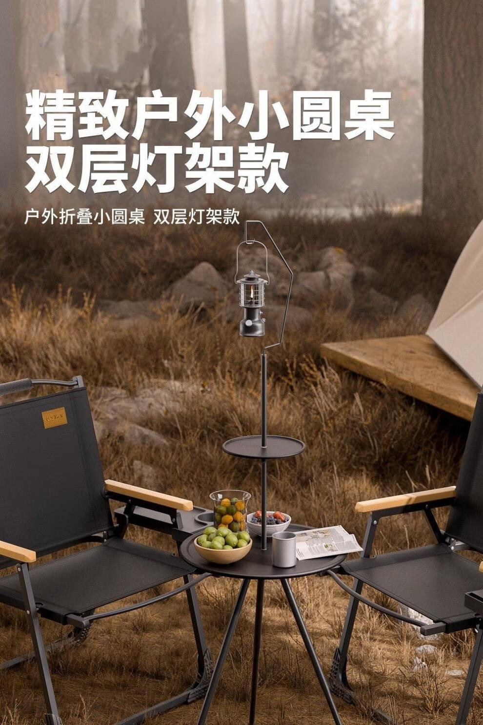 迪飞客折叠小圆桌户外露营网红轻量化桌子便携式简易野餐超轻野营 木纹色(圆桌+灯架)