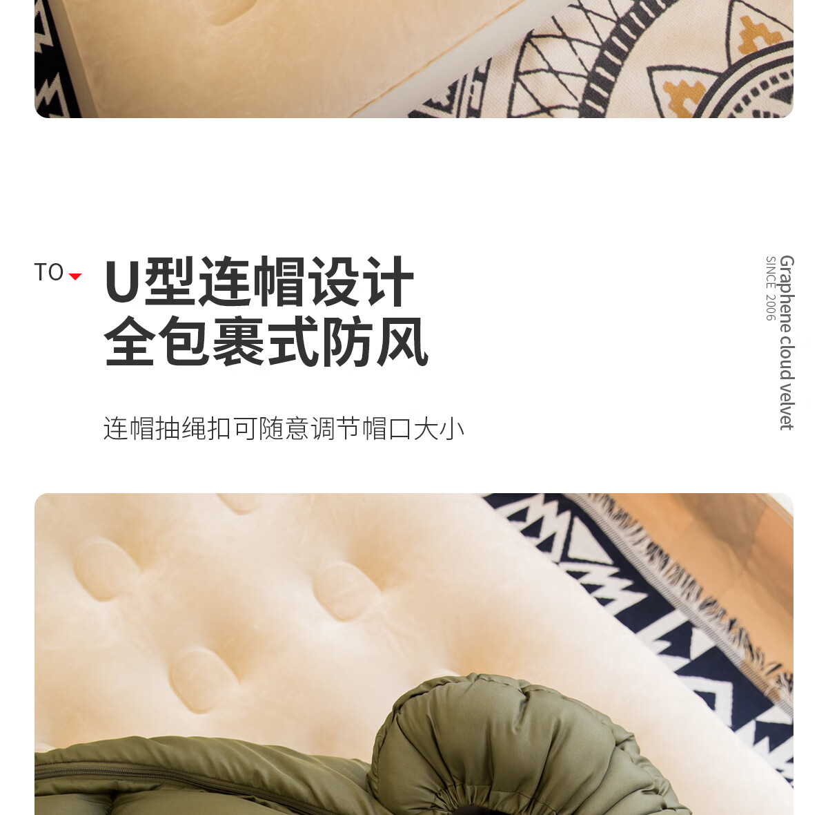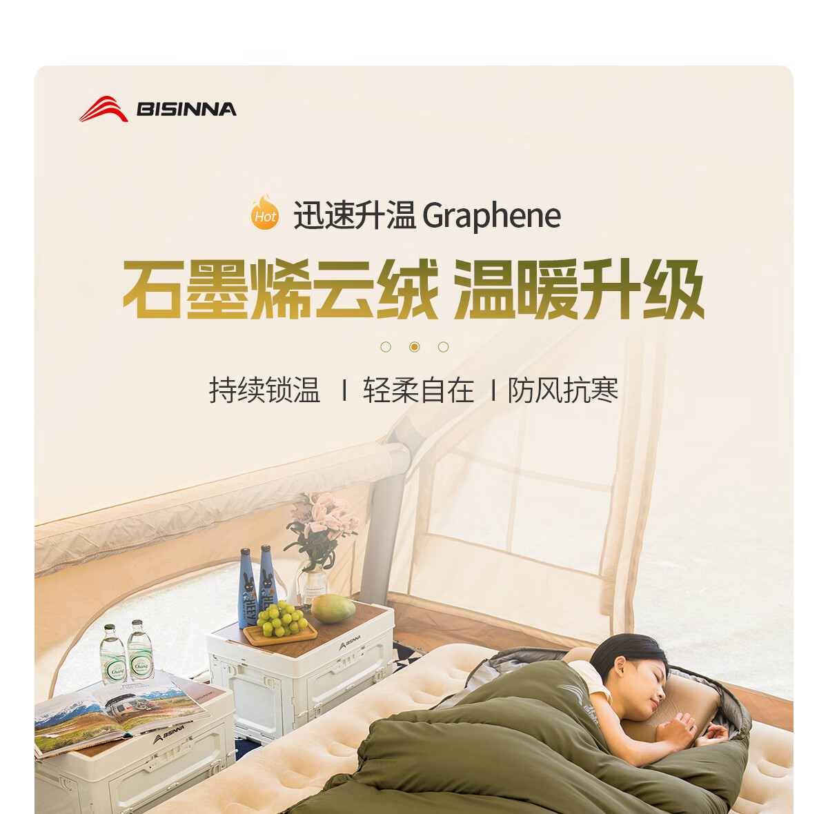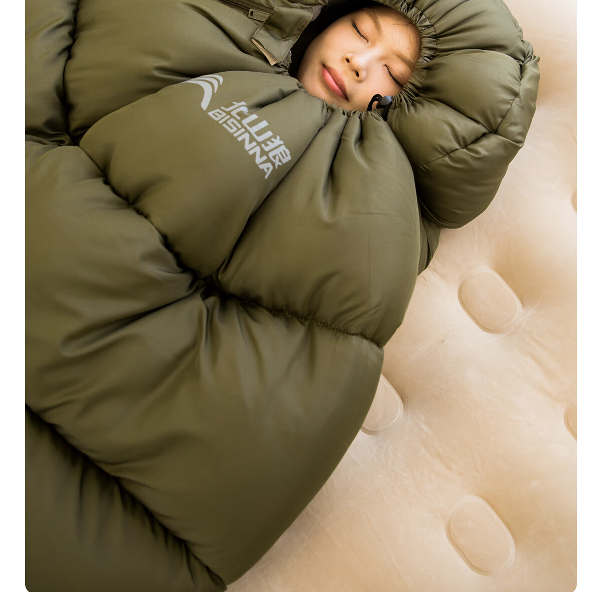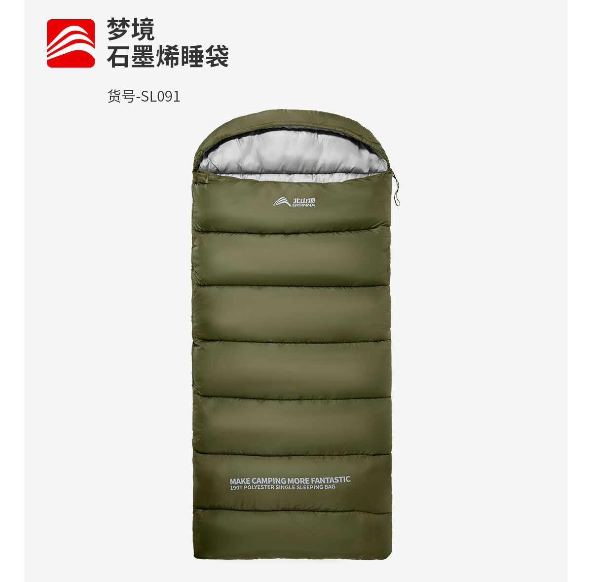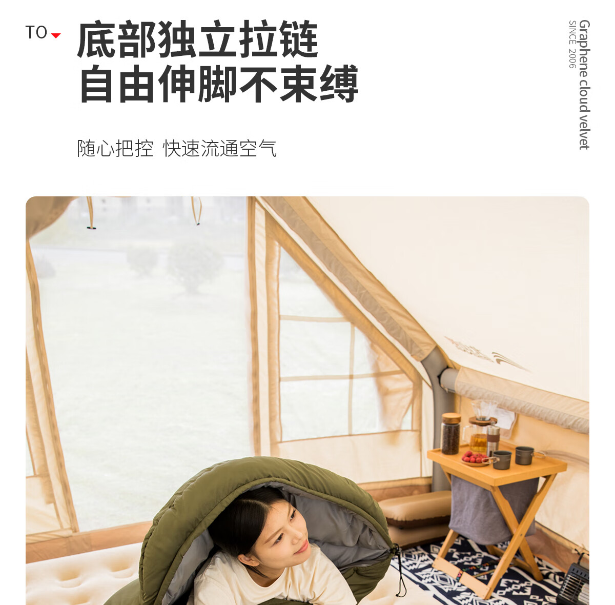 北山狼石墨烯云绒睡袋冬天成人加厚防寒保暖户外秋冬露营午休被子 风松绿1.8kg【石墨烯云绒】