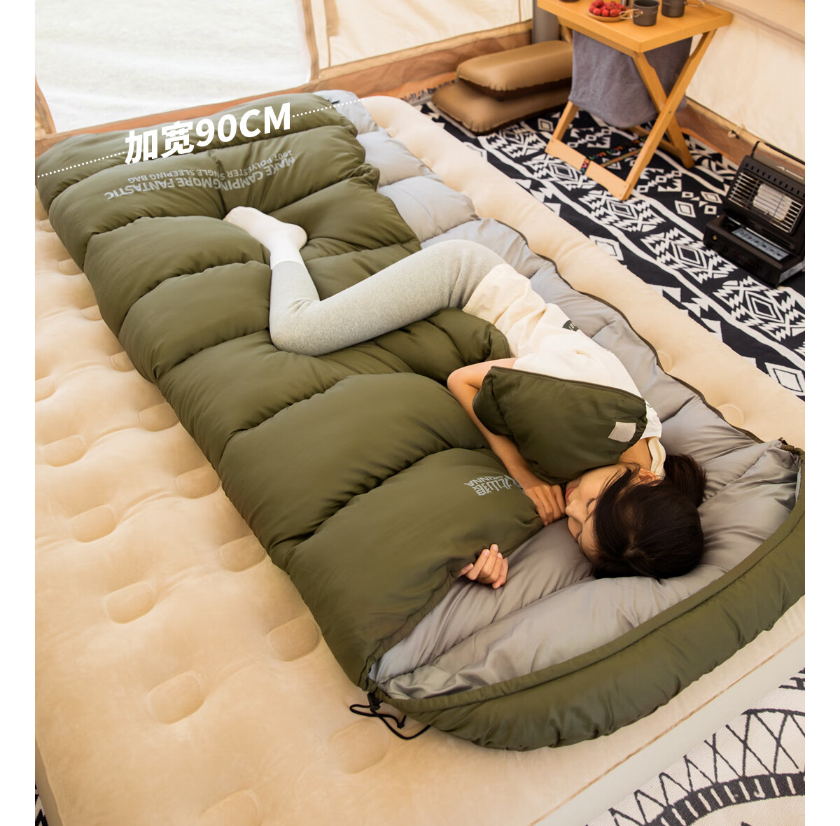 北山狼 成人睡袋冬季石墨烯加厚加宽防寒户外露营午休两用单人被子 双人款-5.0Kg风松绿【送植绒枕】