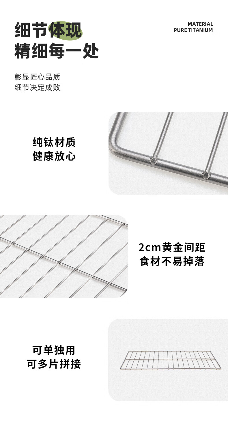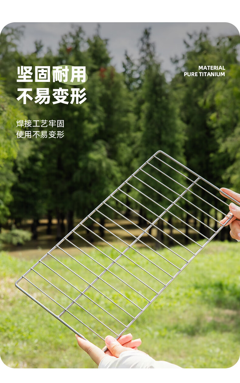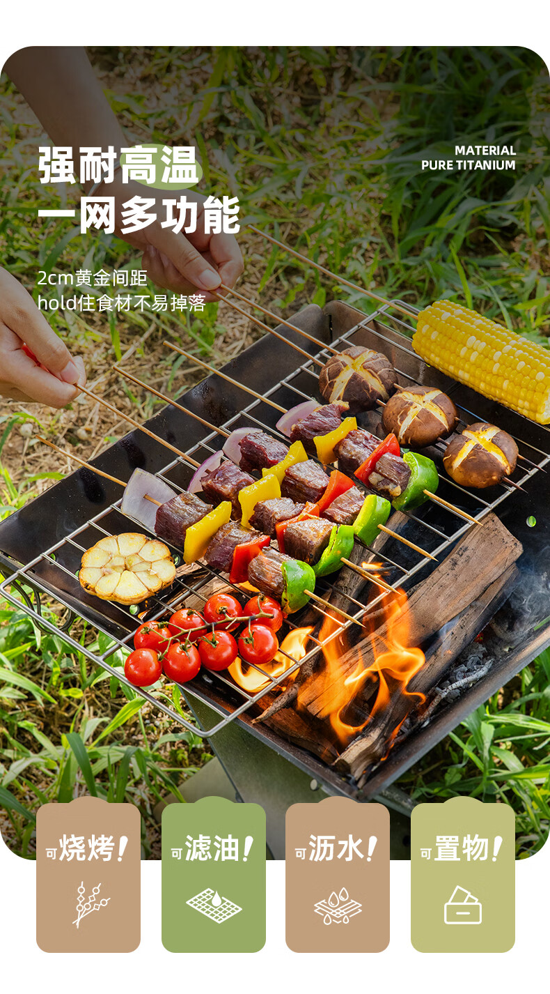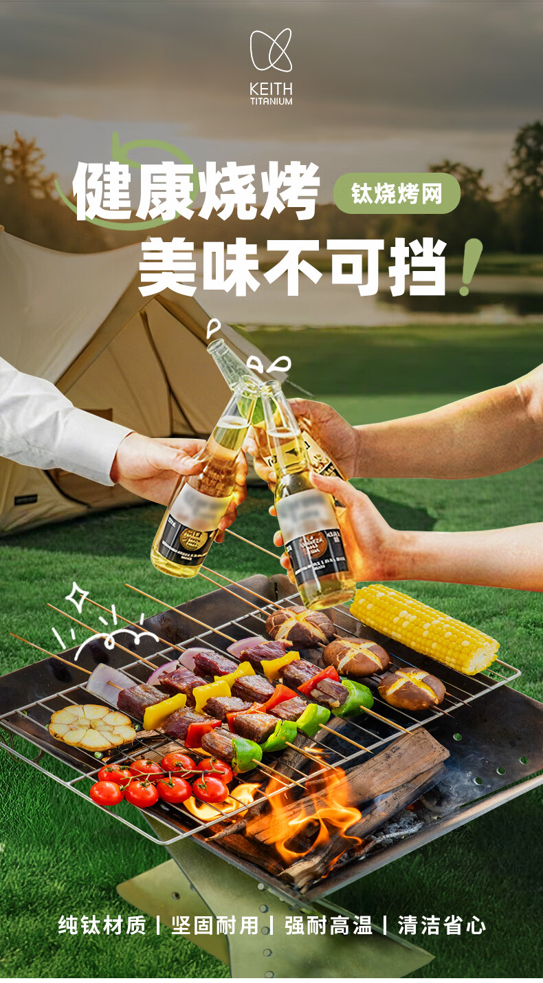 KEITH铠斯新品纯钛烧烤网露营烤肉架耐高温传导快轻量易清洁野餐烧烤架 Ti2211纯钛烧烤架