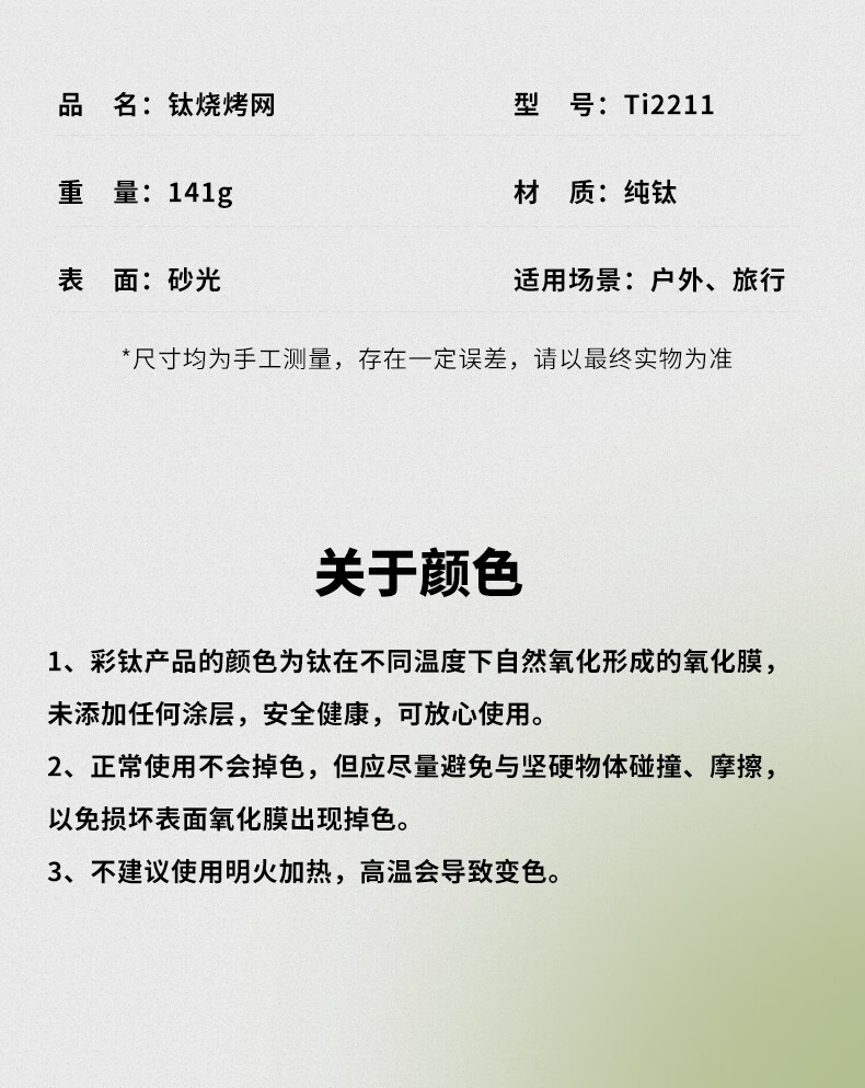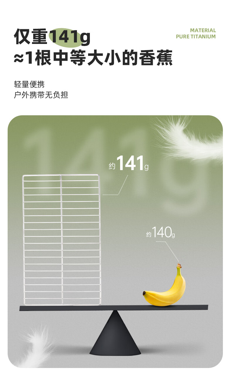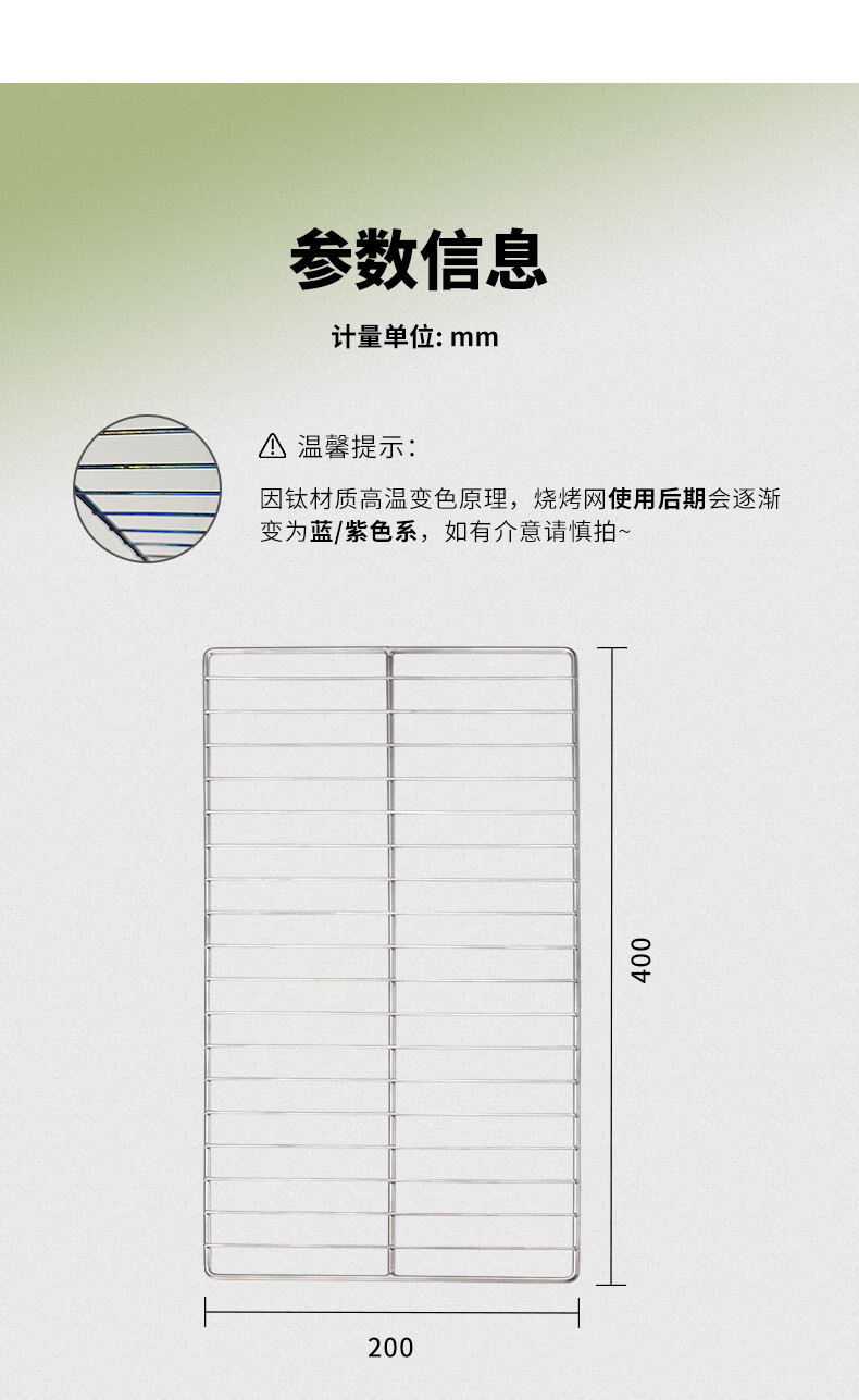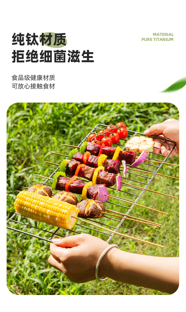 KEITH铠斯新品纯钛烧烤网露营烤肉架耐高温传导快轻量易清洁野餐烧烤架 Ti2211纯钛烧烤架