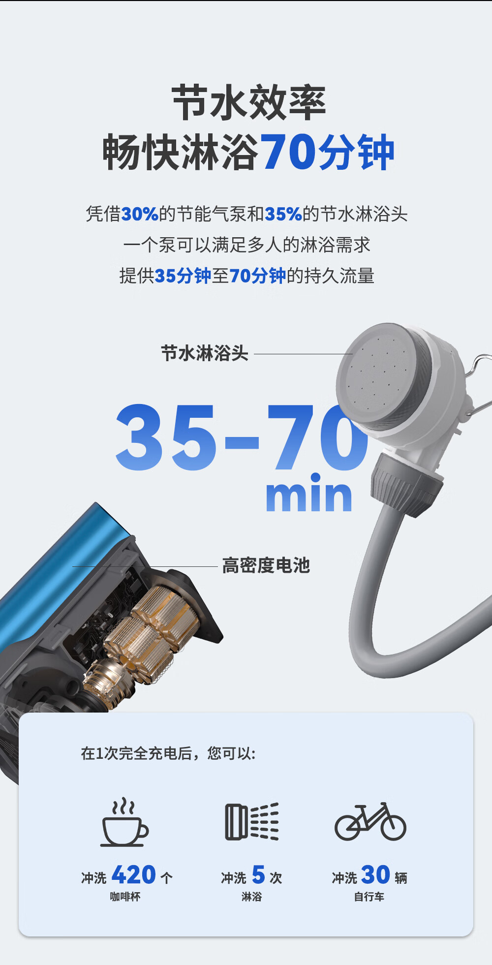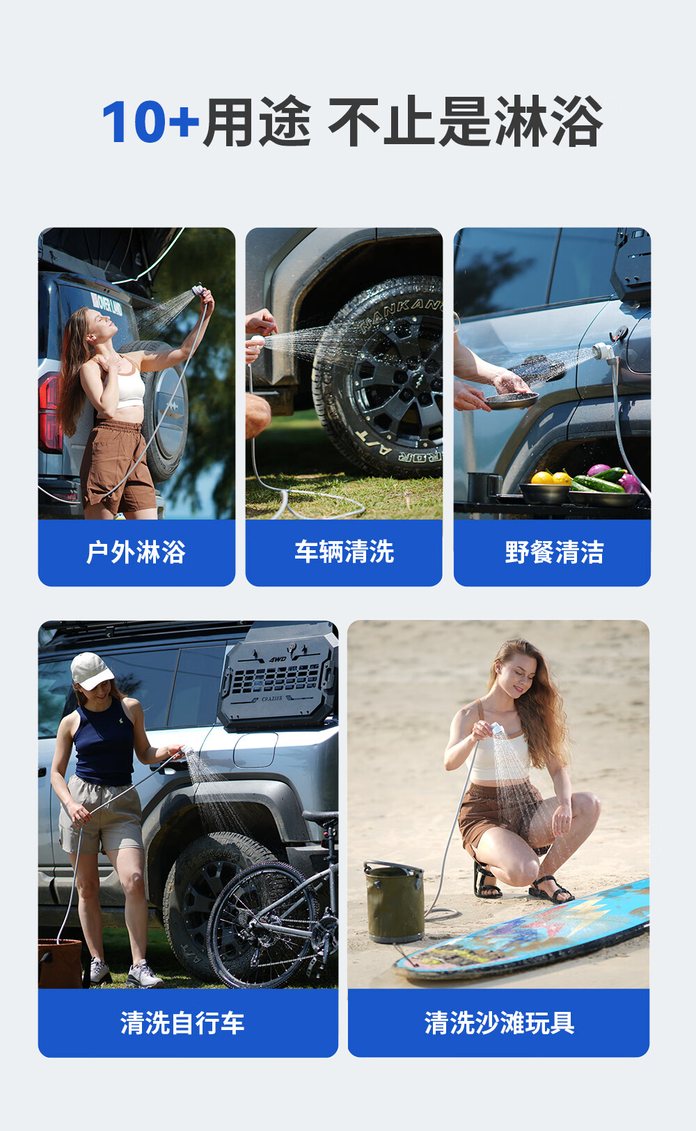 lulumount户外露营洗澡神器宿舍农村家用租房便携淋浴器自吸泵电动抽水花洒 【标配加热款】赠送加热棒