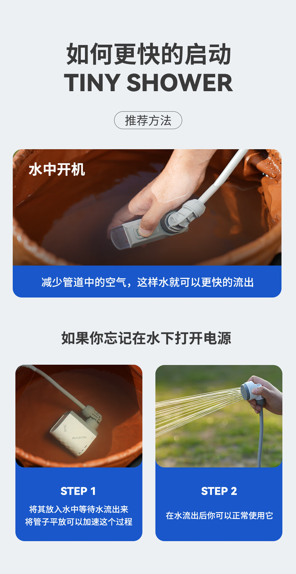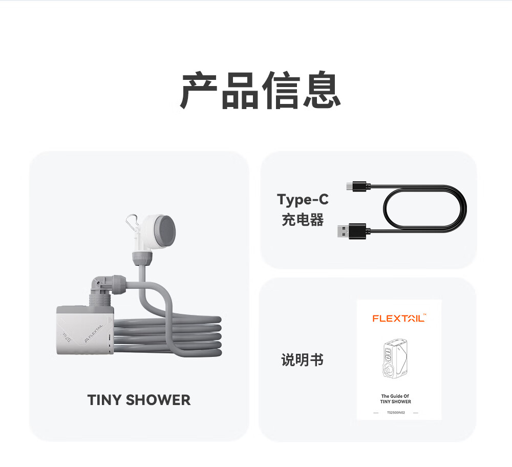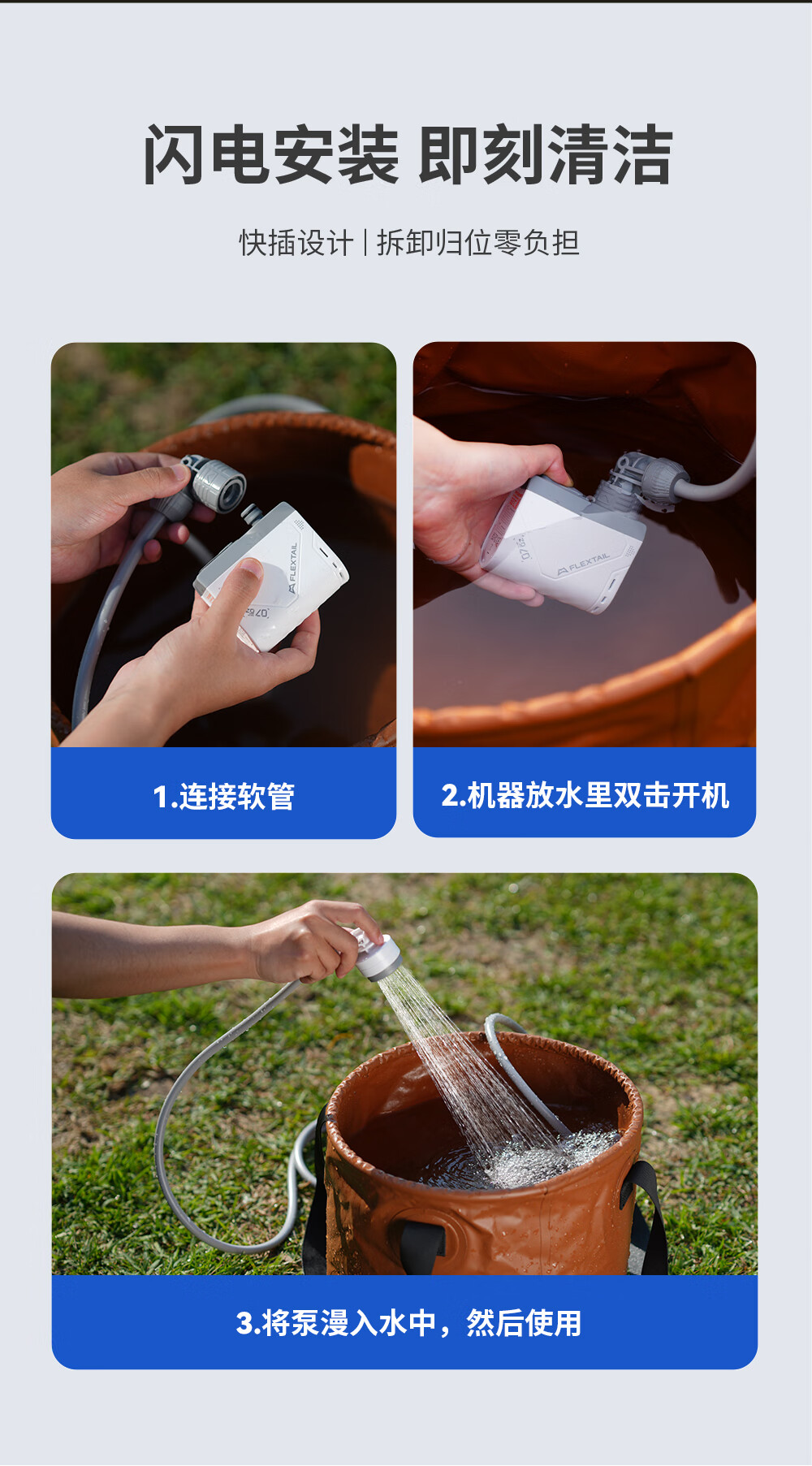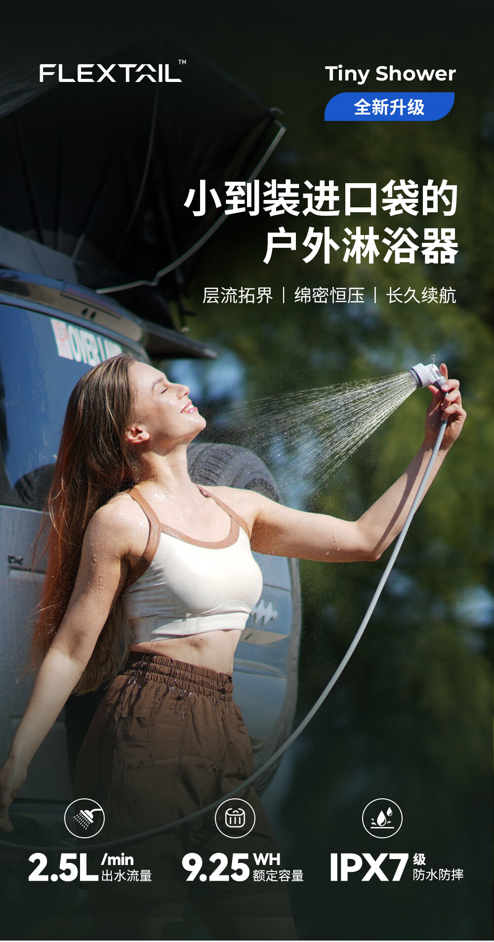 FLEXTAILGEAR二代鱼尾户外便携式电泵淋浴器露营自驾简易电动花洒宿舍洗澡神器 洗澡神器【二代迷你】