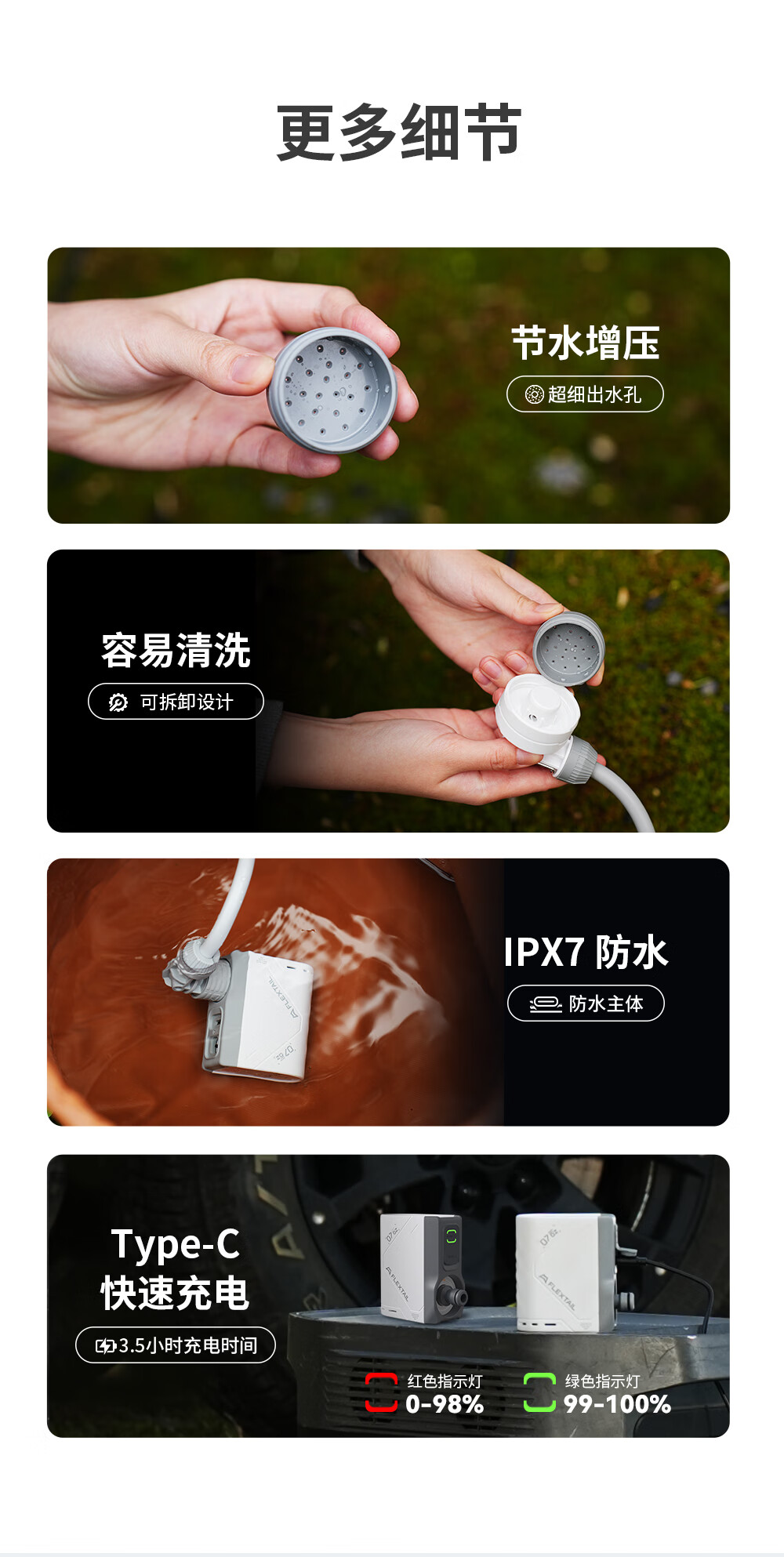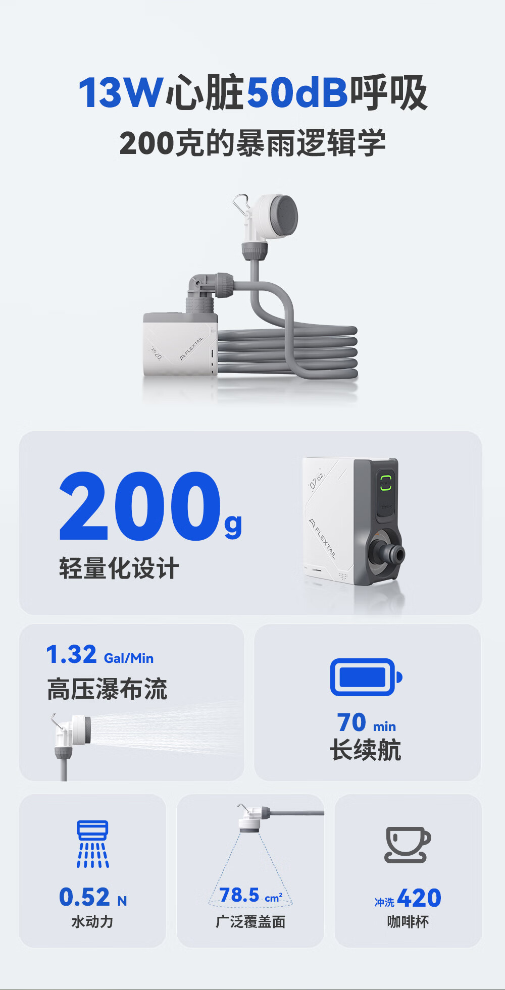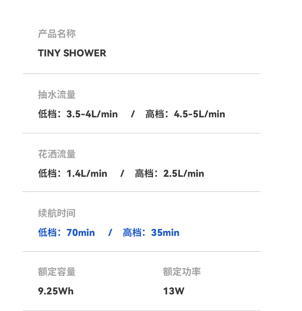 FLEXTAILGEAR二代鱼尾户外便携式电泵淋浴器露营自驾简易电动花洒宿舍洗澡神器 洗澡神器【二代迷你】