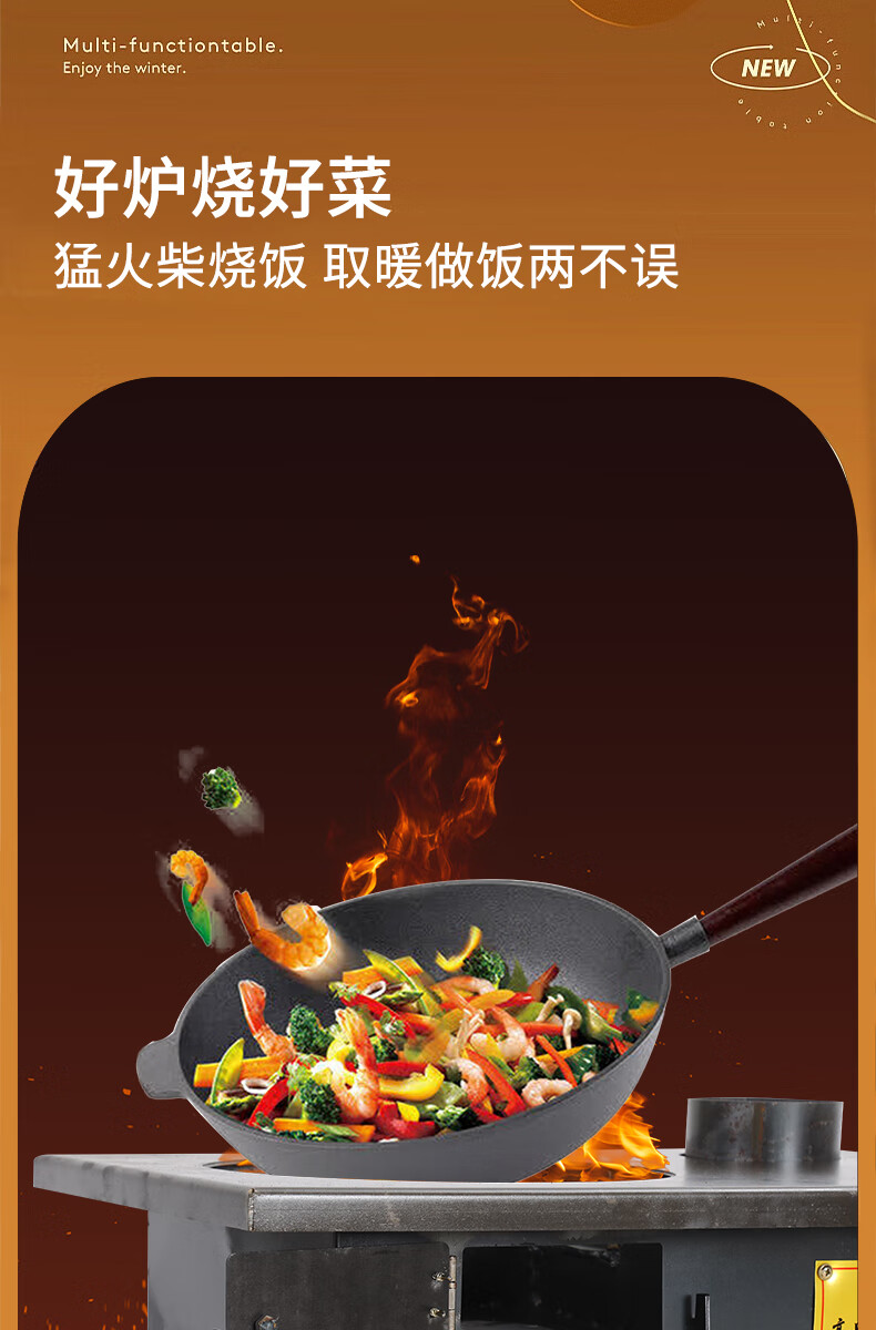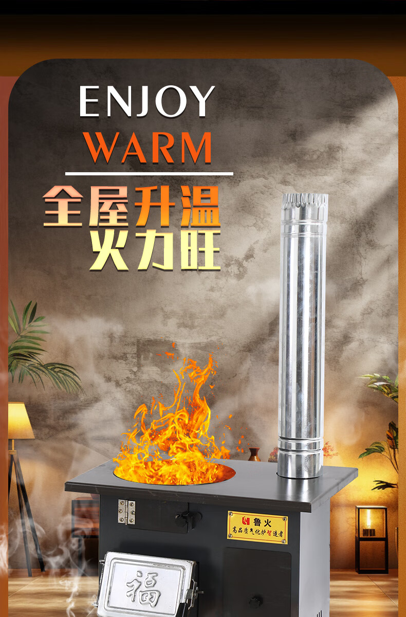 璞灶旺冬季柴火灶加厚加高农村取暖炉烧柴家用节能柴煤两用多功能回风炉 1米圆桌不锈钢(柴火炉)