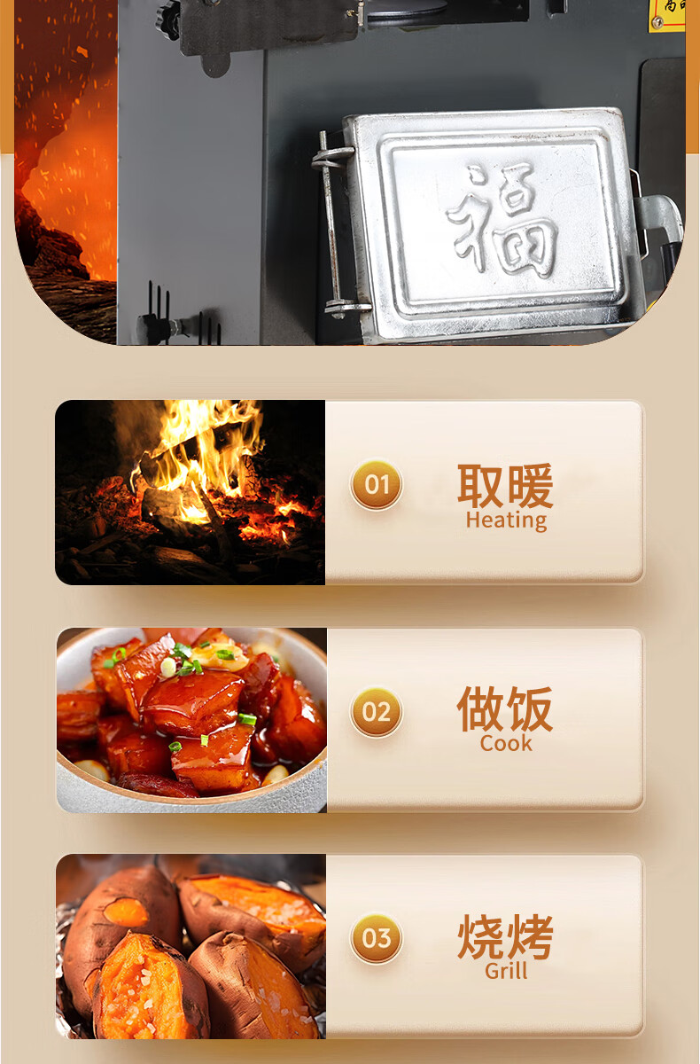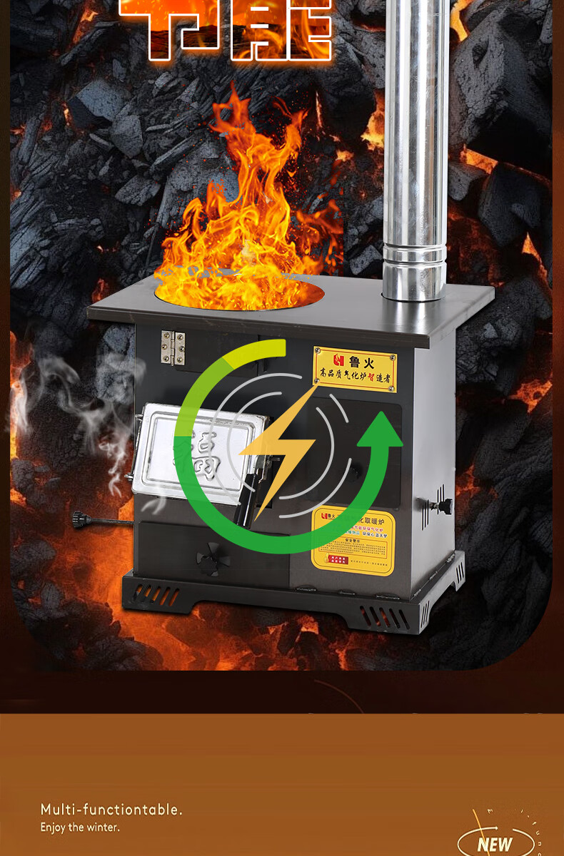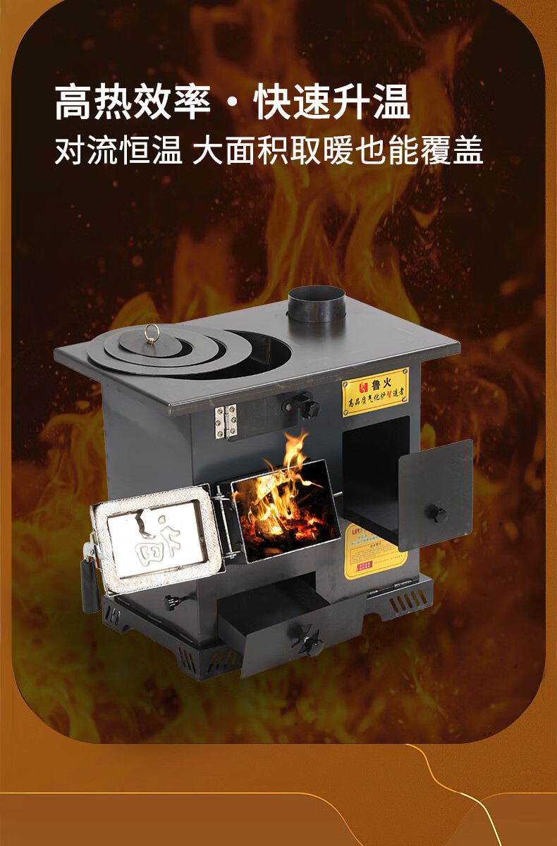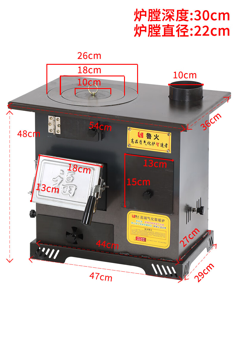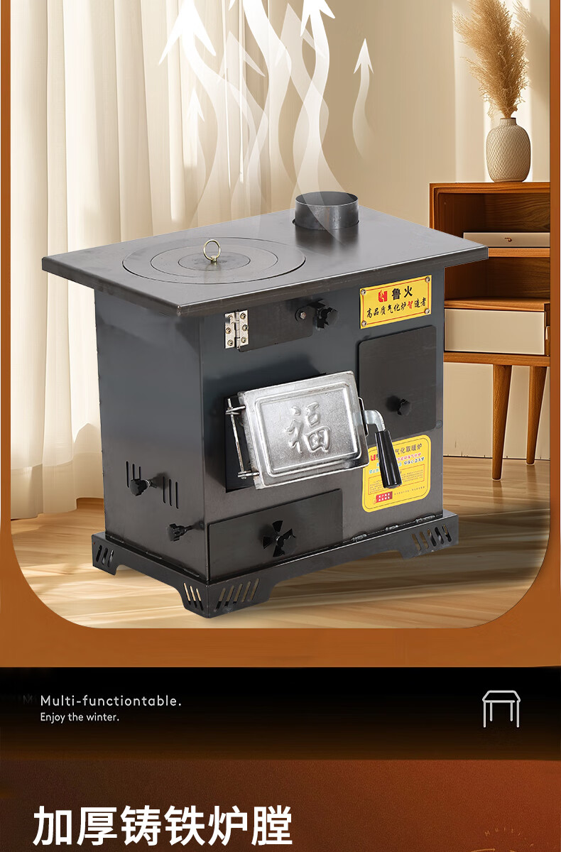 古慕妮家用煤炭取暖炉子烤火炉柴煤两用炉室内炉节能炉气化柴碳炉 无气化功能前开经典小胆