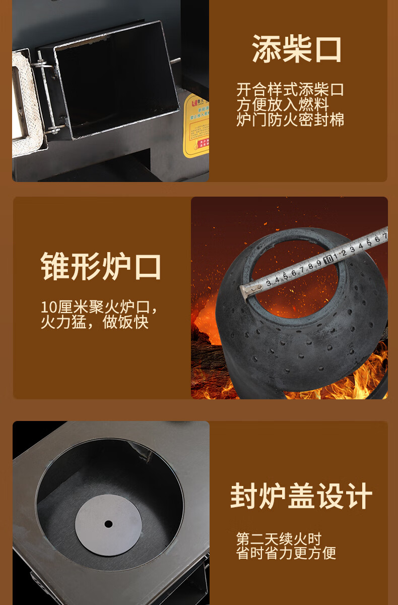土灶旺冬季柴火灶加厚加高农村取暖炉烧柴家用节能采暖炉室内柴煤两用多功能回风炉烤火炉子 特厚款 1米加厚不锈钢【柴炉】