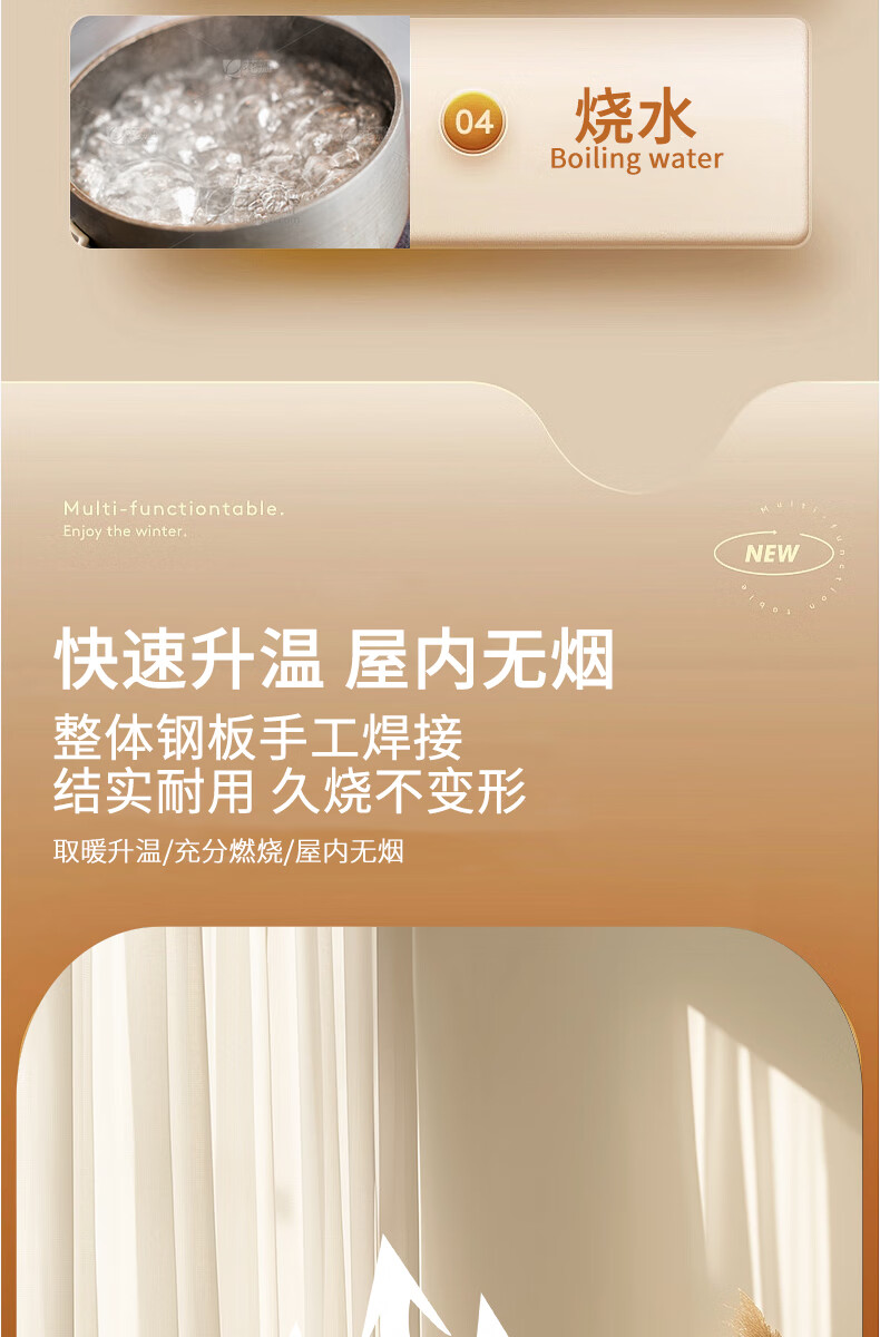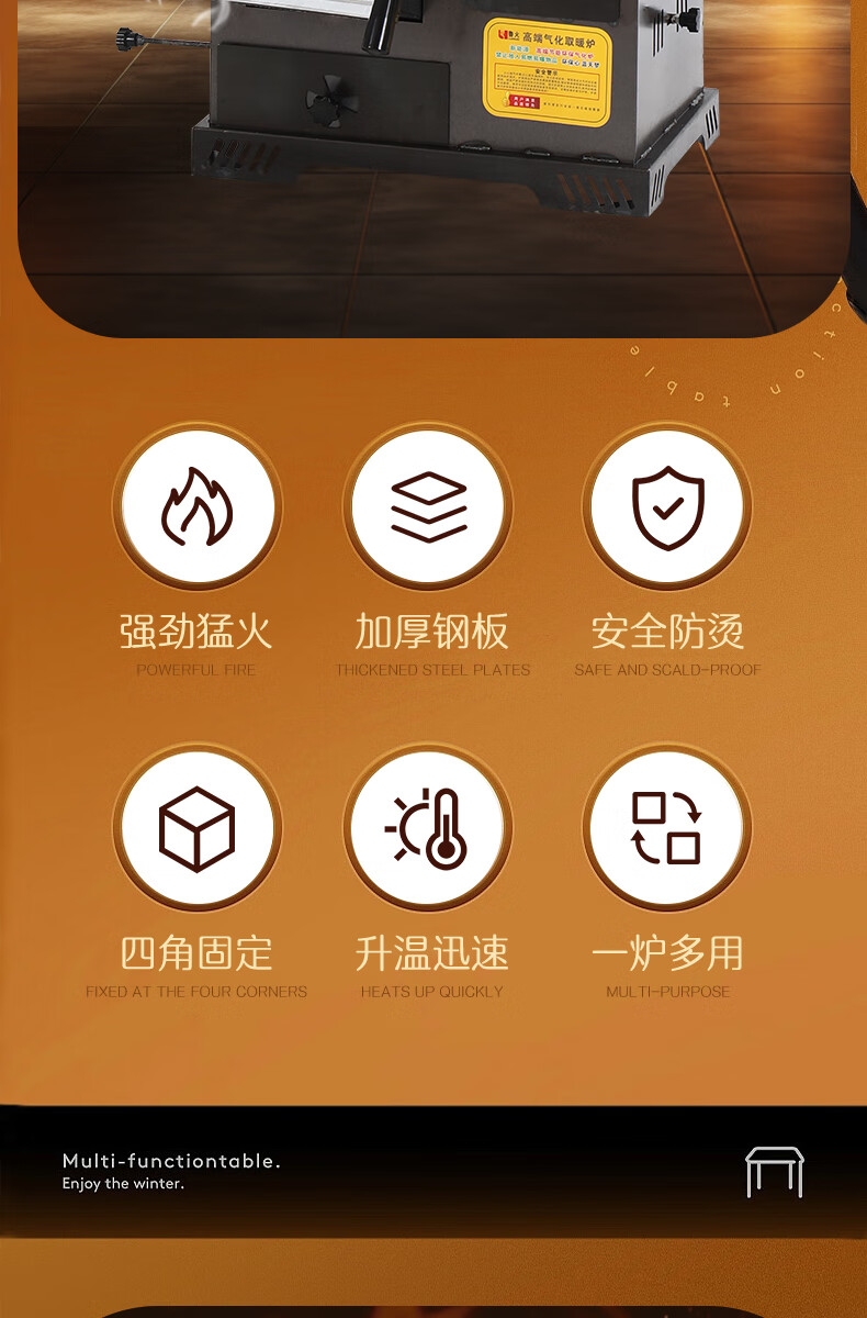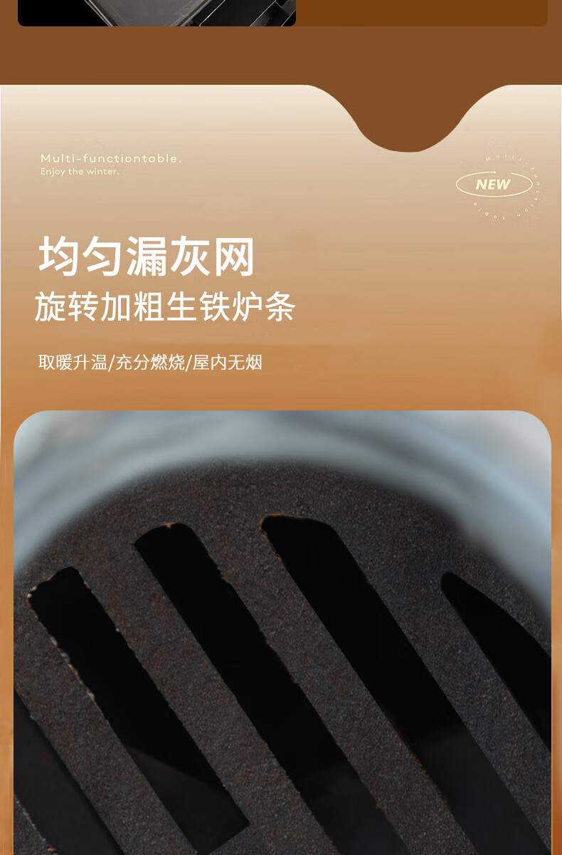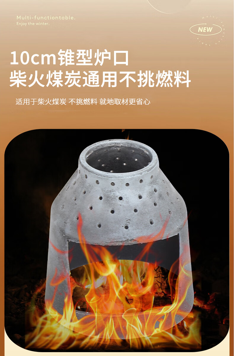 璞灶旺回风炉农村家用取暖柴火炉煤火炉柴煤两用炉多功能烤火桌节能取暖 0.8米钢化玻璃桌面 柴煤两用炉