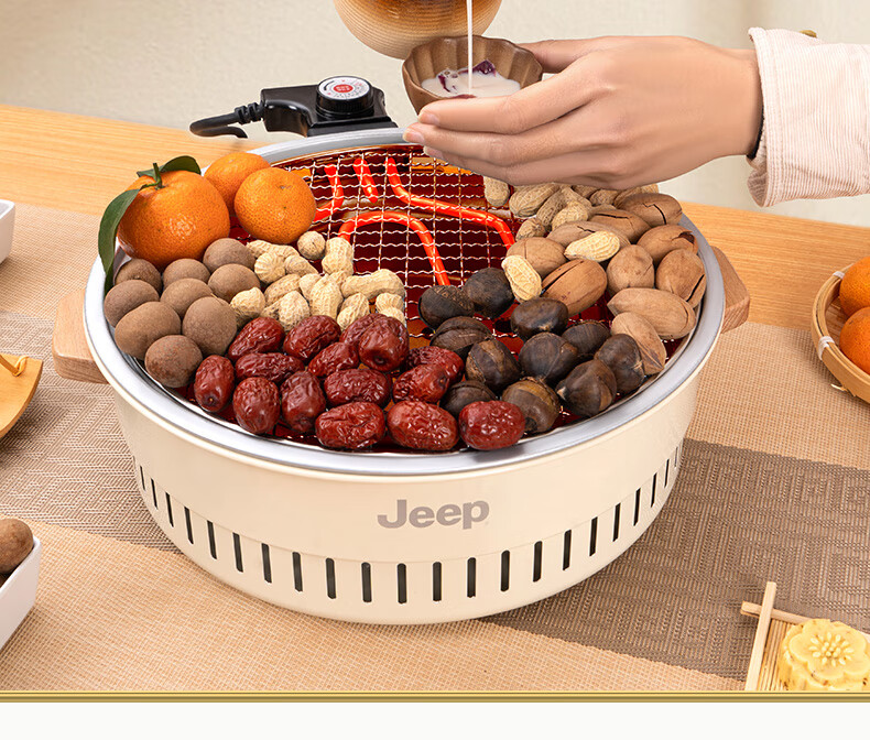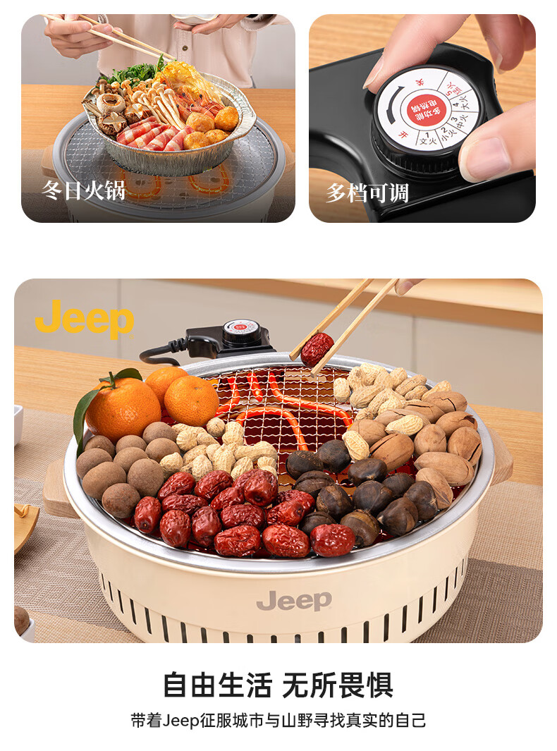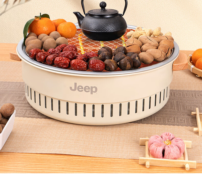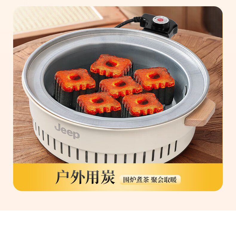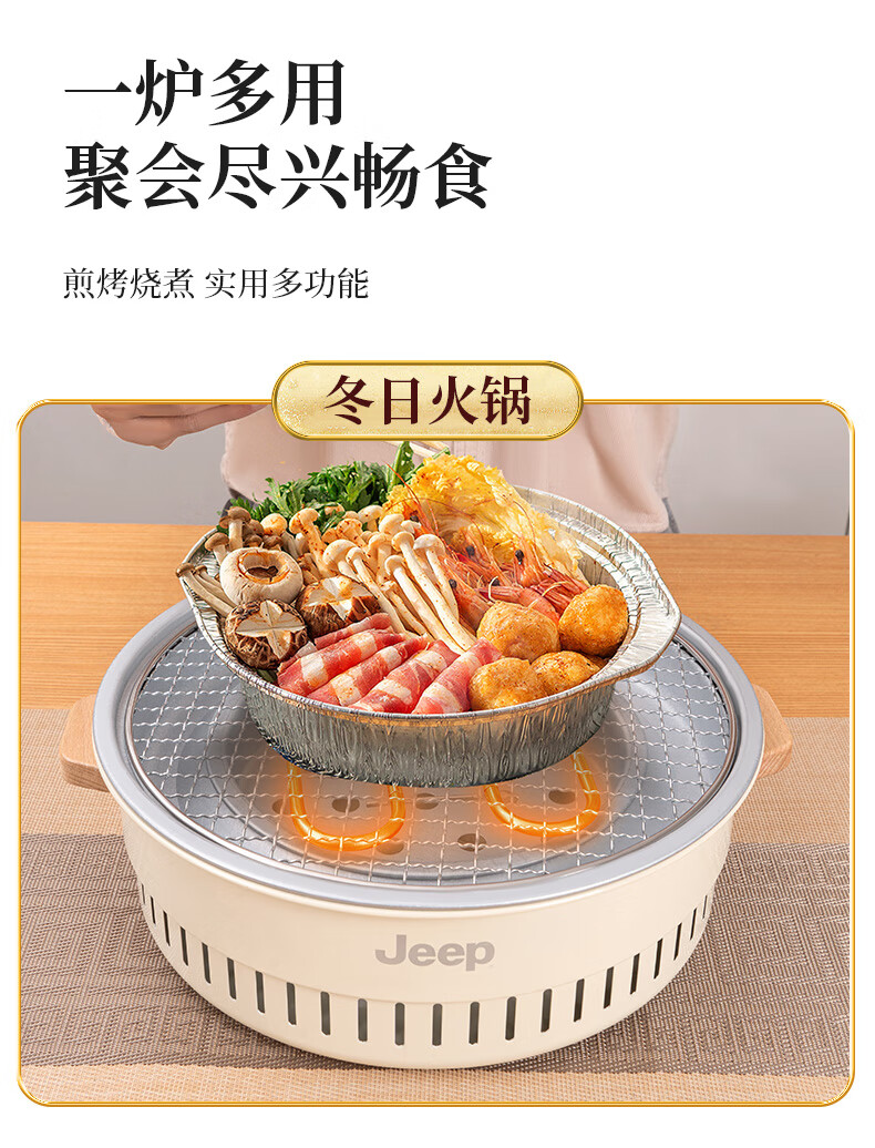 JEEP烤火炉户外庭院烤火盆电碳两用款取暖炉室内烧烤炉家用围炉煮茶 标配套餐