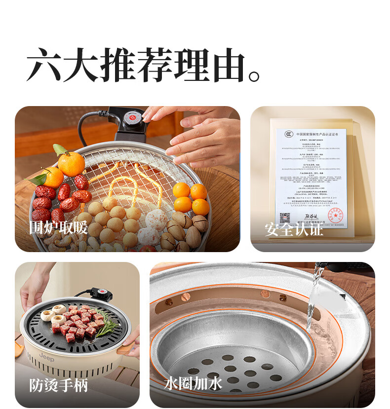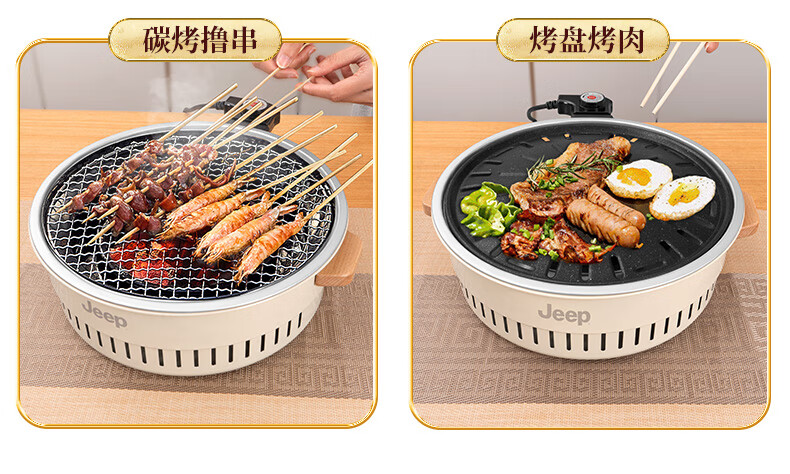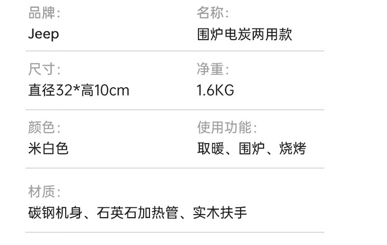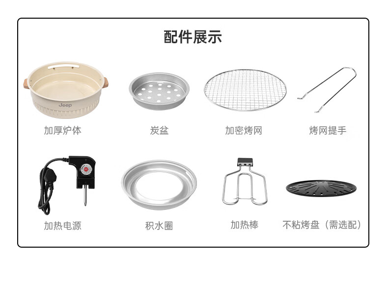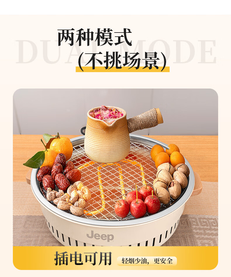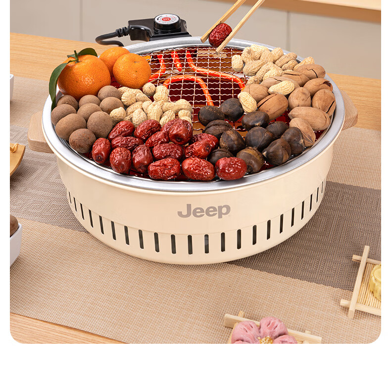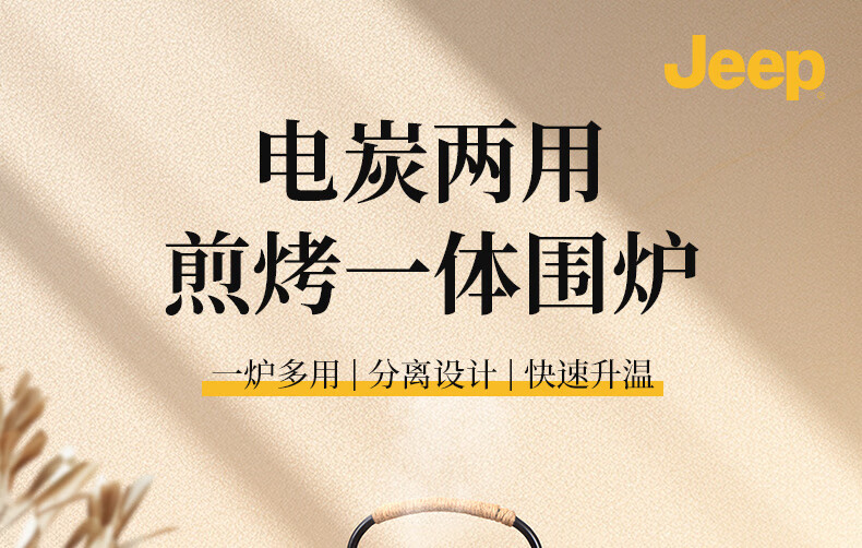 JEEP烤火炉户外庭院烤火盆电碳两用款取暖炉室内烧烤炉家用围炉煮茶 标配套餐