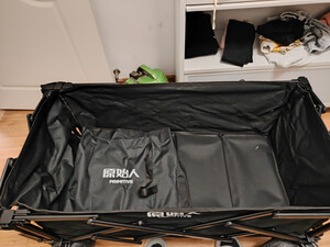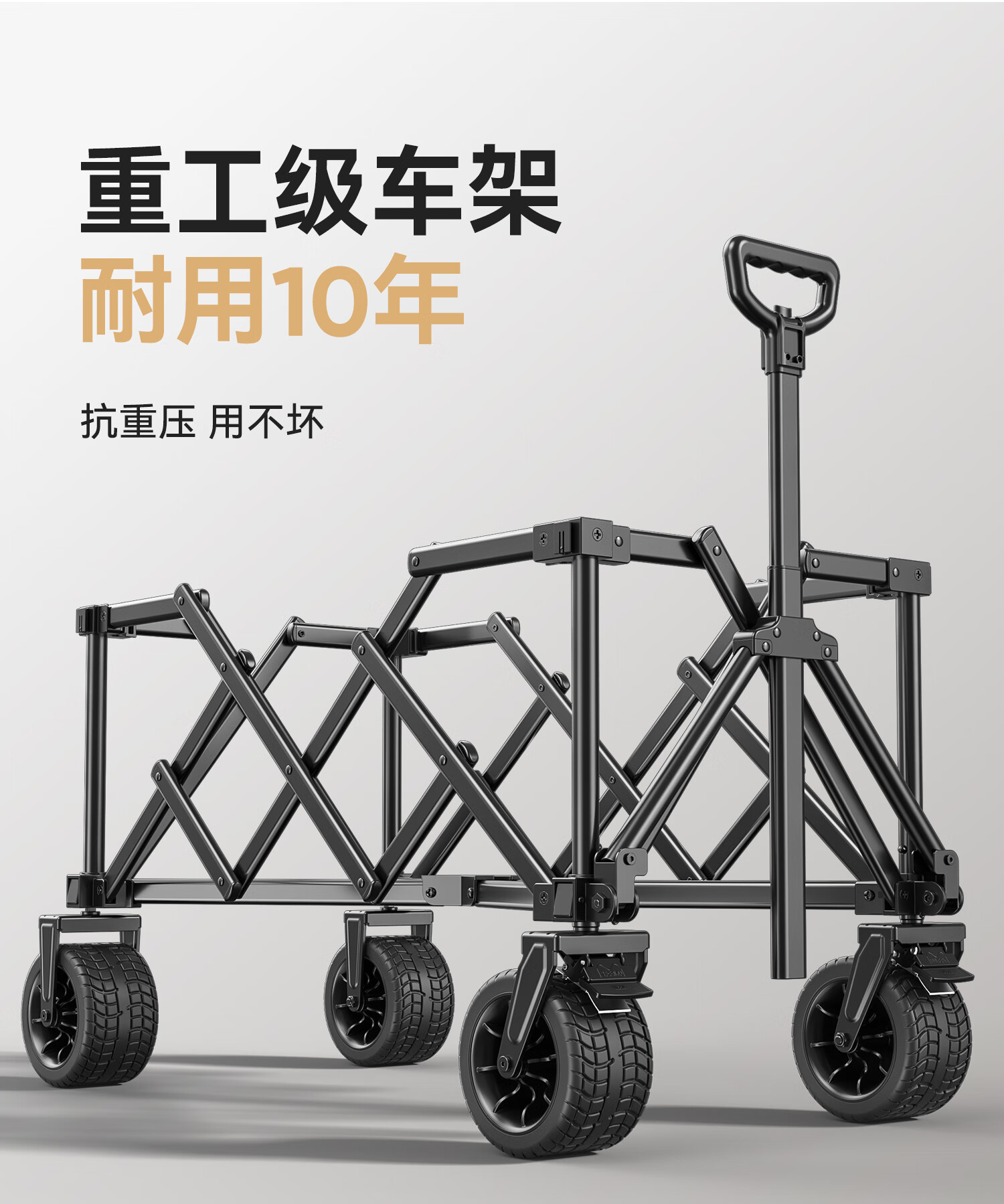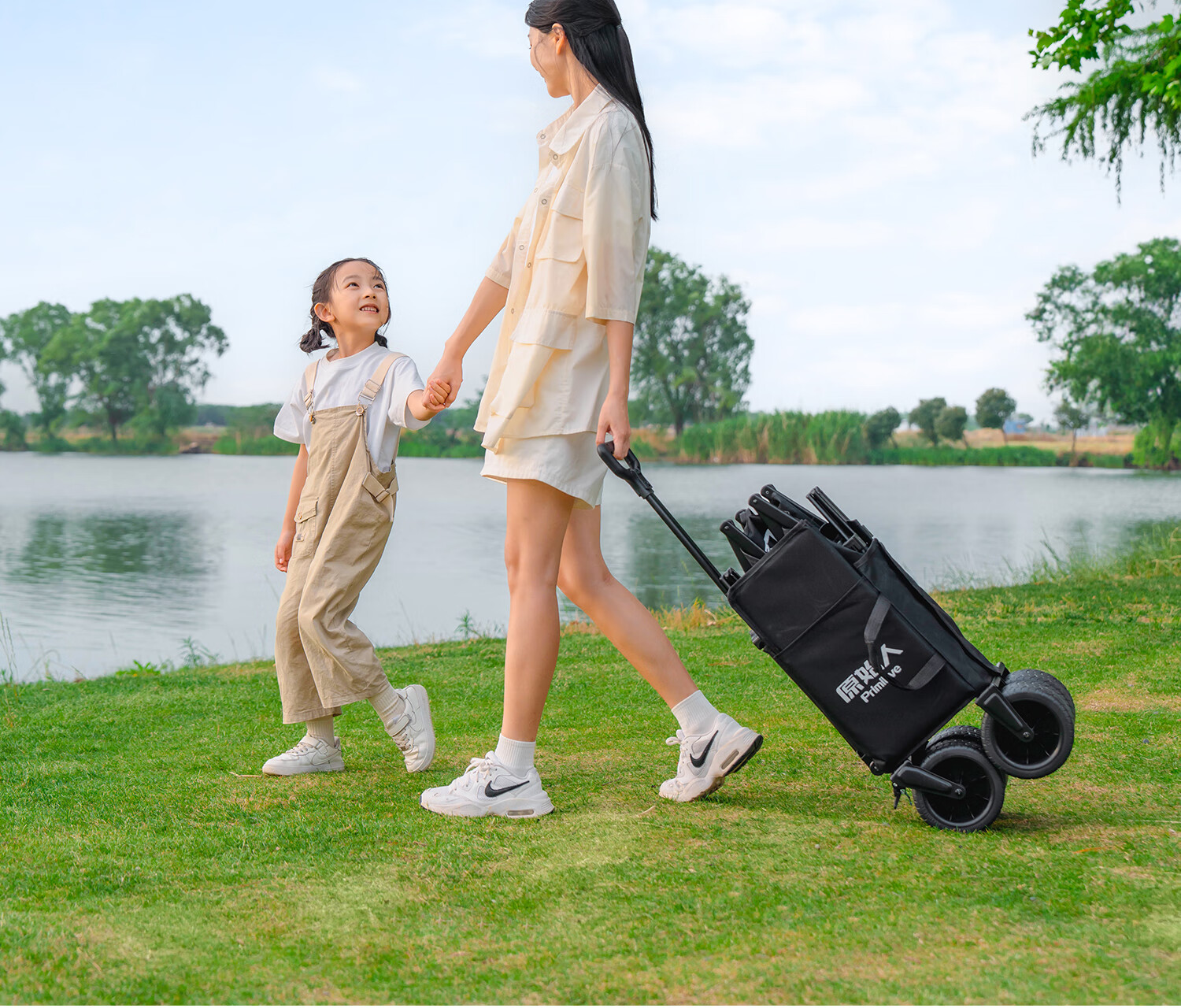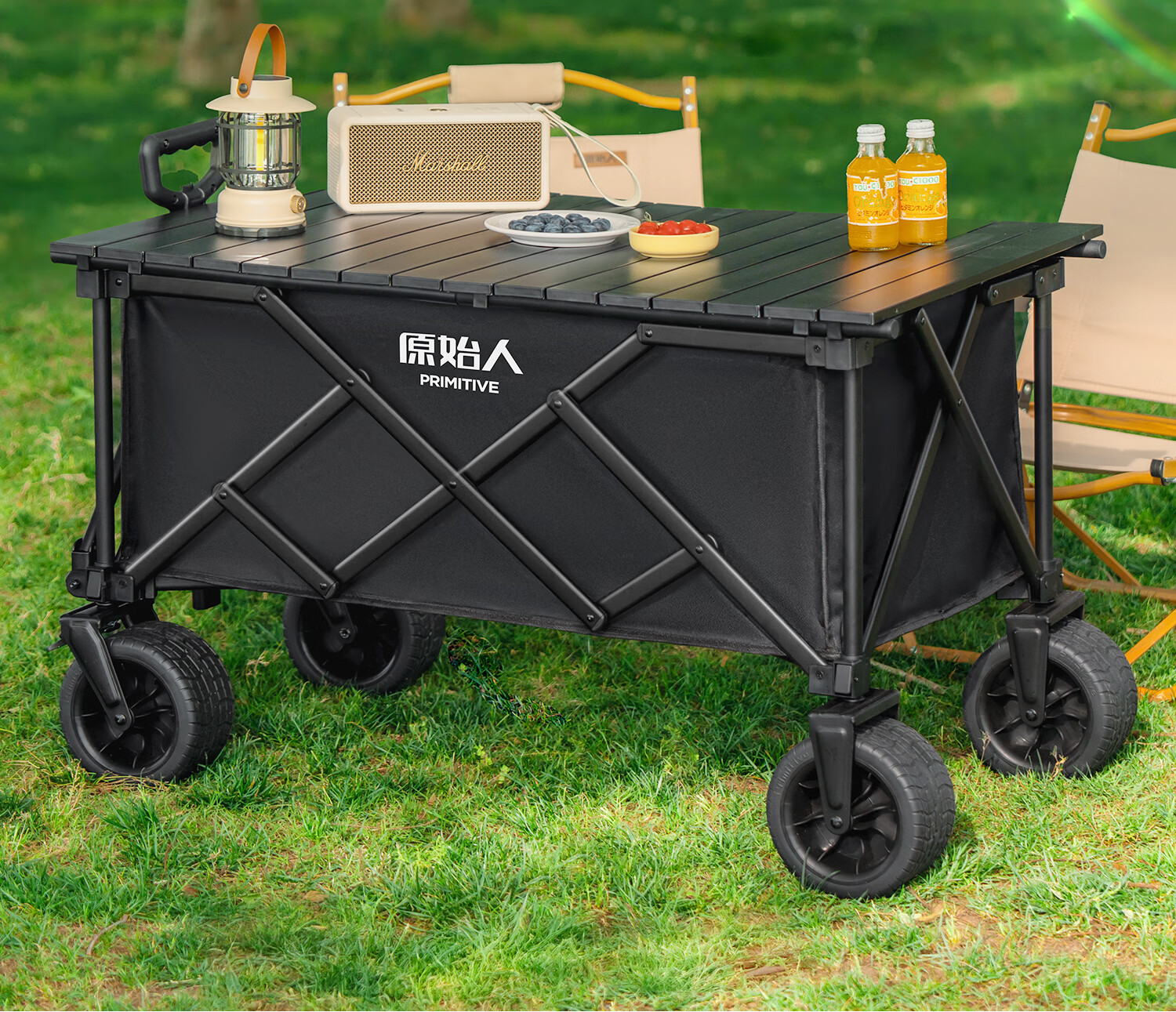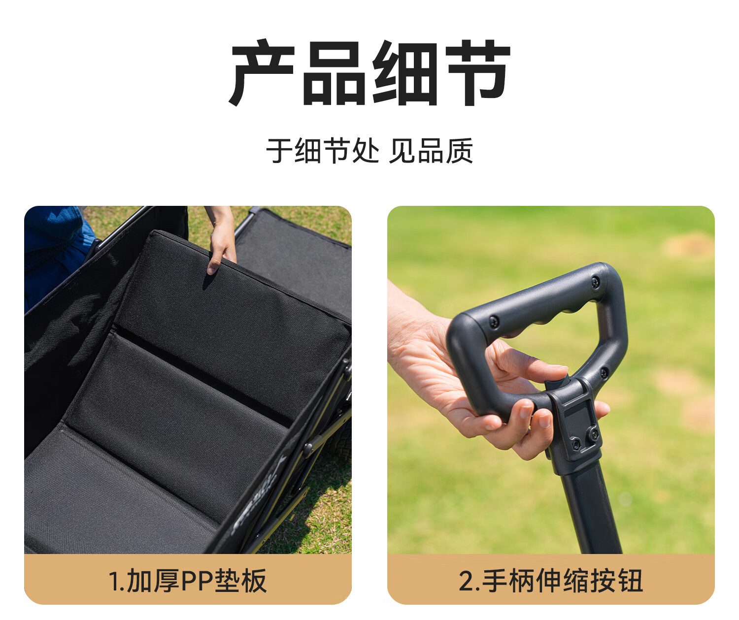 原始人好品牌户外露营车,拉杆顺畅,不卡顿,容量大,载重力很强,材质厚实,推起来非常稳当,很容易收起。小孩子非常喜欢,可以坐在里面,让我我来拉他们。