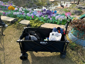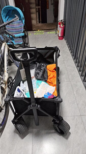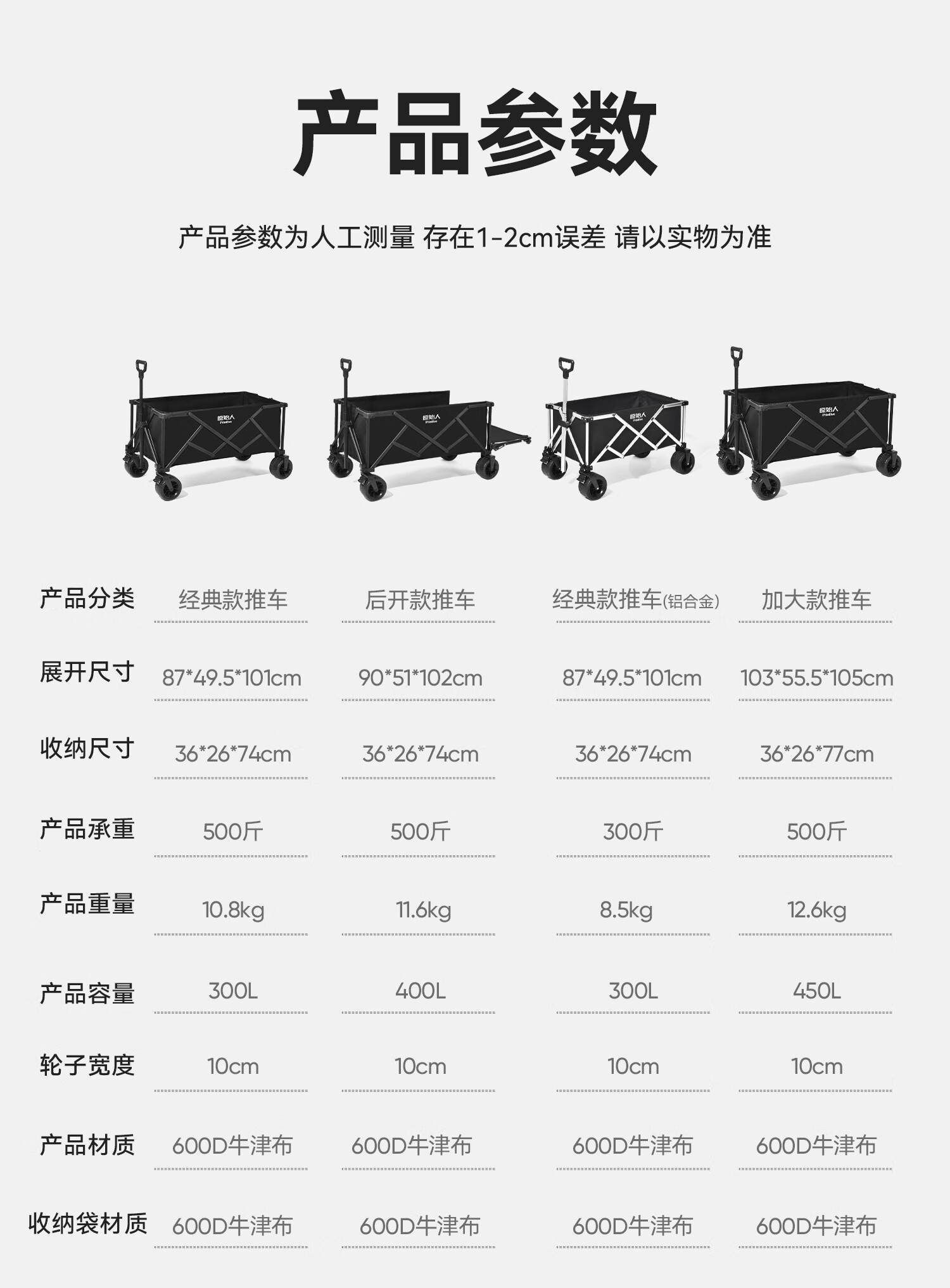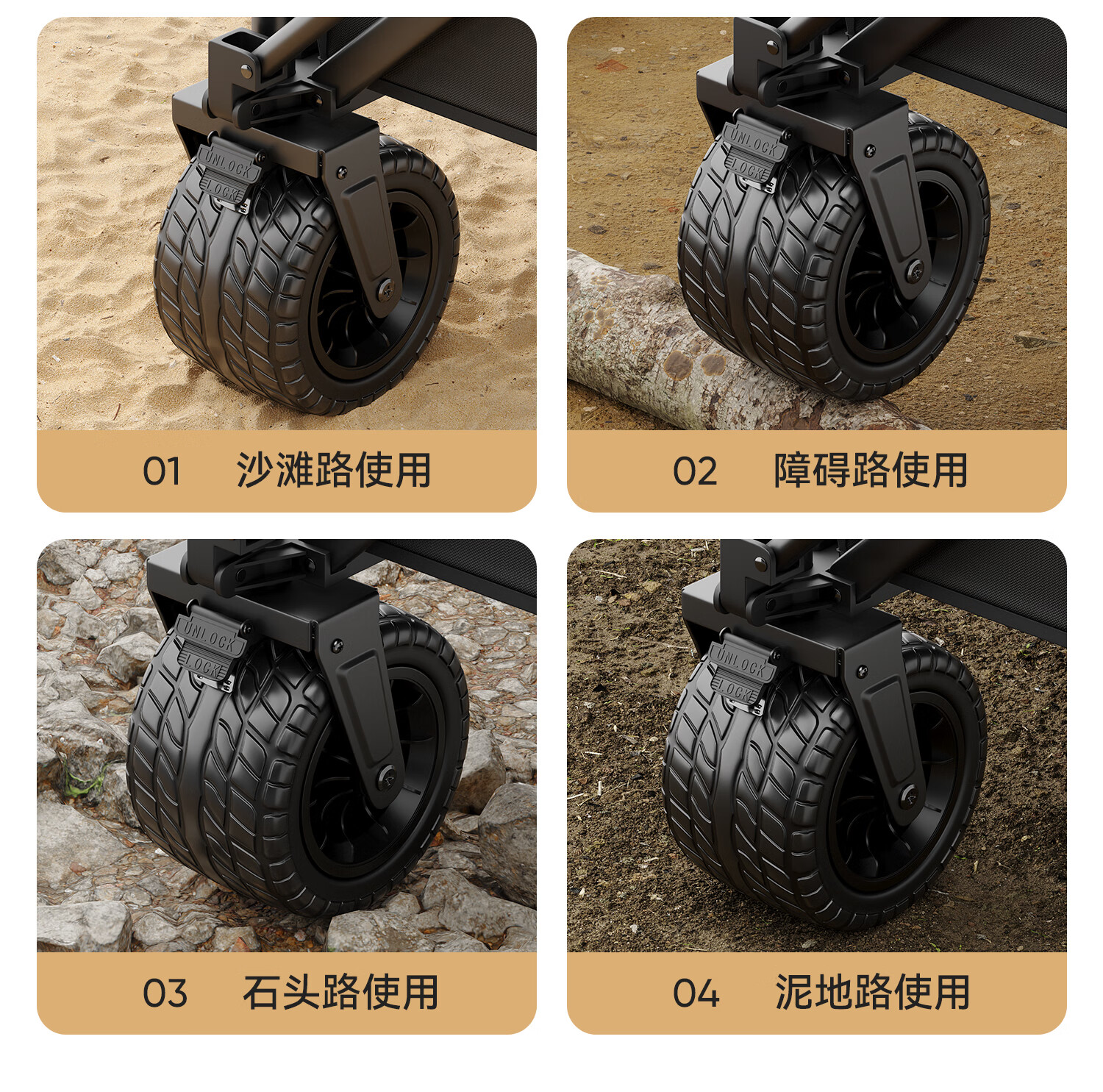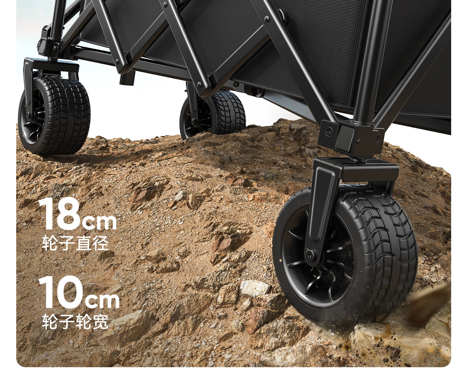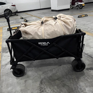 户外露营首选,宽体越野轮子,拉起来很丝滑流畅,很省力,大小刚好,孩子累了还能坐着,折叠后不占地方直接放后备箱,方便实用,点赞双十一活动很划算,已推荐给朋友