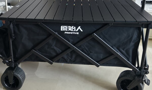 想买一个大的露营车,所以就在网上选了原始人。轮子很粗,大概有10cm宽,万向轮很顺滑,牛津布材料也很结实,孩子80 斤也可以坐在里面,黑色也很好看,耐脏,铝合金桌子刚好可以卡到上面。唯一不足就是有一处魔术贴,有点小瑕疵,客服已经解决了。