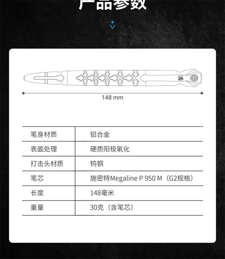 纳丽德NEX纳丽德NP20钨钢龙骨战术笔防卫笔破窗防身装备防狼便携EDC装备 钨钢龙骨战术笔(内含一支笔芯)