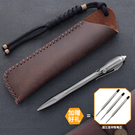 酷撼 钛合金重手感小狼锤战术笔合法防身武器商务签字笔多功能拉栓笔 钛合金原色+疯马笔袋 送3支笔芯
