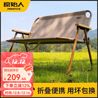 原始人户外折叠椅子露营椅钓鱼凳子便携式轻双人靠背躺椅沙滩椅 双人卡其色