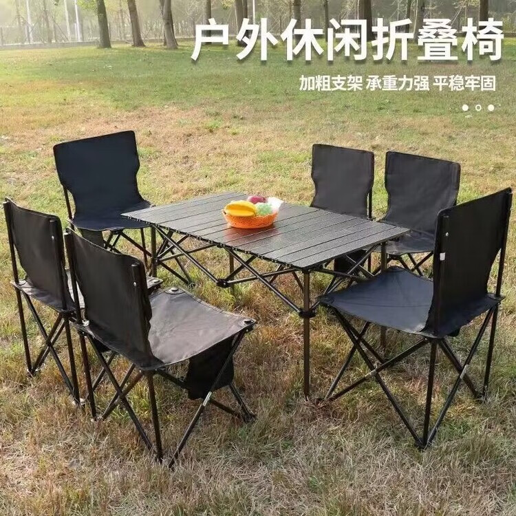 骆穂豆户外折叠桌椅可升降加厚便携式露营野餐桌摆摊烧烤蛋卷桌桌椅 [53*51*50]黑色[基础款]送包