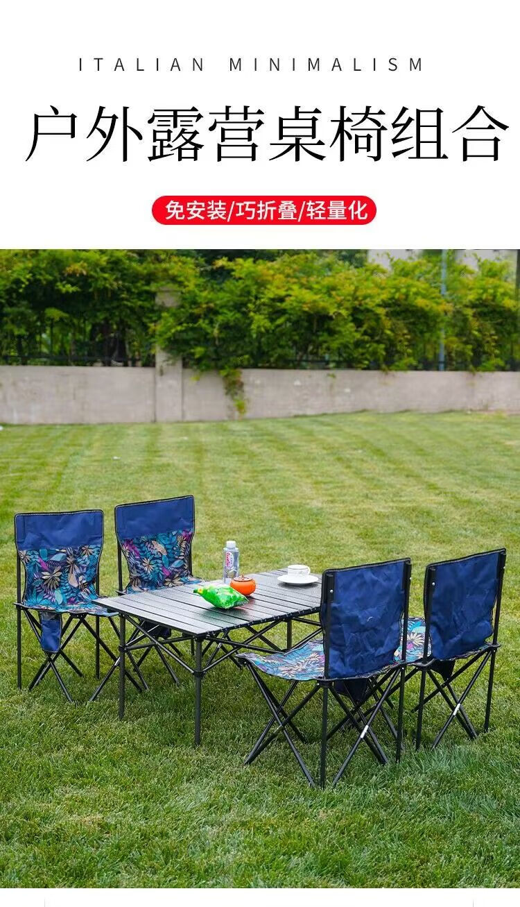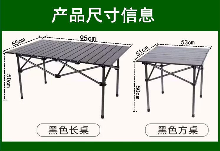 户外折叠桌椅便携耐用野餐桌子露营用品烧烤桌椅露营桌椅折叠蛋卷 (升降95)黑色长桌