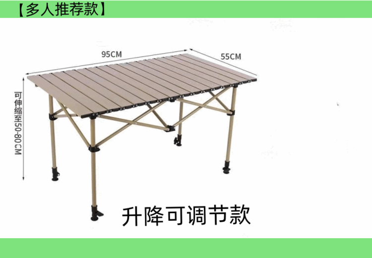 碳钢合金可升降折叠蛋卷桌户外折叠桌便捷露营桌露营车地摊夜市桌 95米色升降桌+网兜