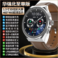 桥观2024年高清大屏无黑边顶配智能手表男款商务接打电话运动心率 银色棕皮送黑色胶带防暴贴