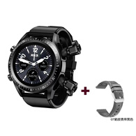 HKMW华为机HUAWEl适用智能手表双蓝牙耳机二合一可通话录音32g内存测血压心率运动手环 黑色硅胶+黑色皮带