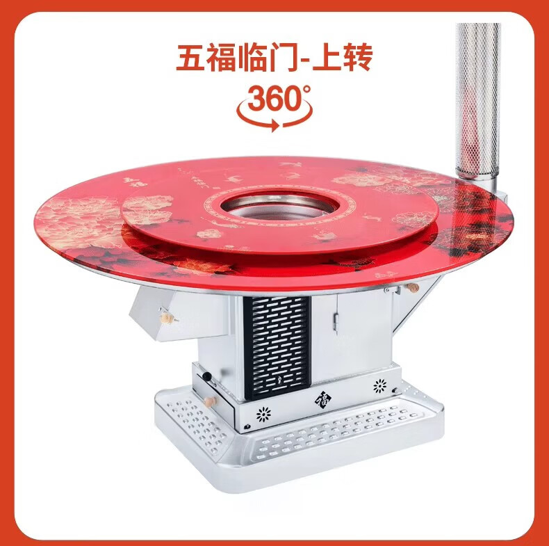 能师傅【送货上门】气化炉农村高端烤火炉家用取暖炉烧煤烧柴室内无烟灶 1.2米 加厚不锈钢平转桌面