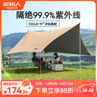 原始人天幕帐篷黑胶天幕户外露营装备全套遮阳棚野营野餐防雨蝶形防晒 加大号钛黑胶奶油咖4.7m*4.4m