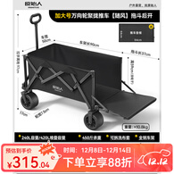 原始人户外露营折叠推车营地车手拉拖车野餐野营拖车遛娃便携买菜小拉车 420L 曜石黑【后开款】10cm越野轮