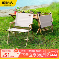 原始人折叠椅户外折叠椅子克米特椅露营椅子野餐椅子便携桌椅野营沙滩椅 木色架-真双层【卡其】经典款