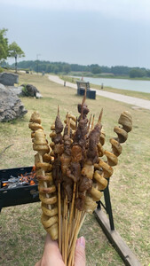 终于如愿以偿吃上烧烤了,不得不说这烧烤架子质量真好,简单易清洁,炉子本身还带着烤网,基本所有的食材都可以放在上面烤,携带也非常方便,这个烧烤炭也很好,没有刺激的烟味,很适合露营野餐或者在家里院子里烤,哈哈哈,美味!非常满意!