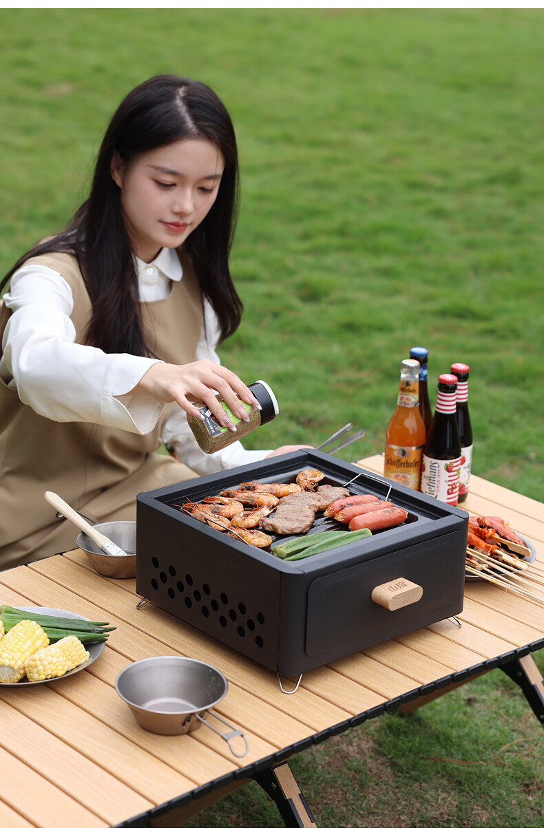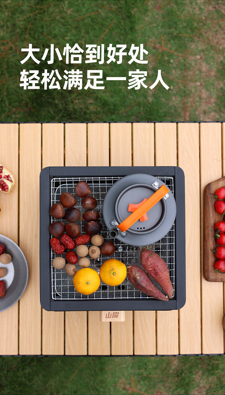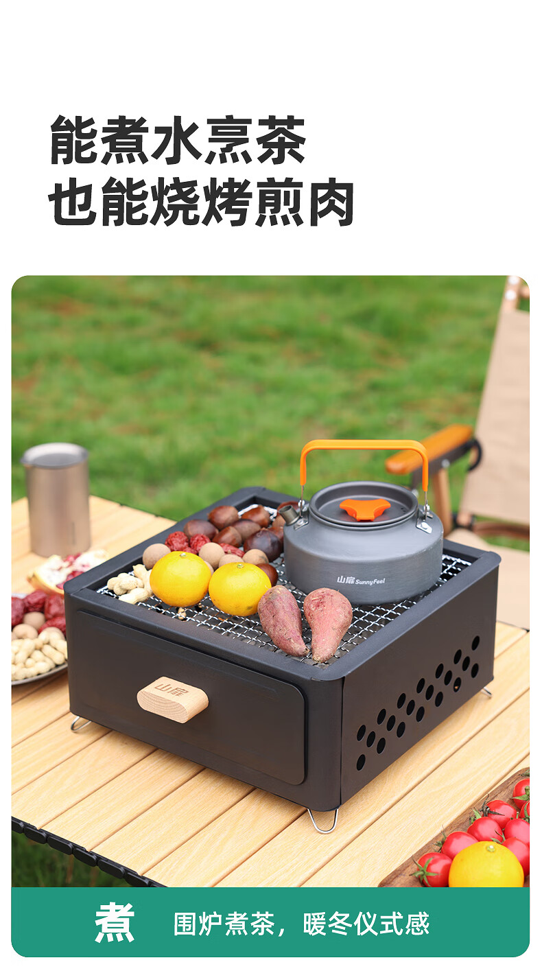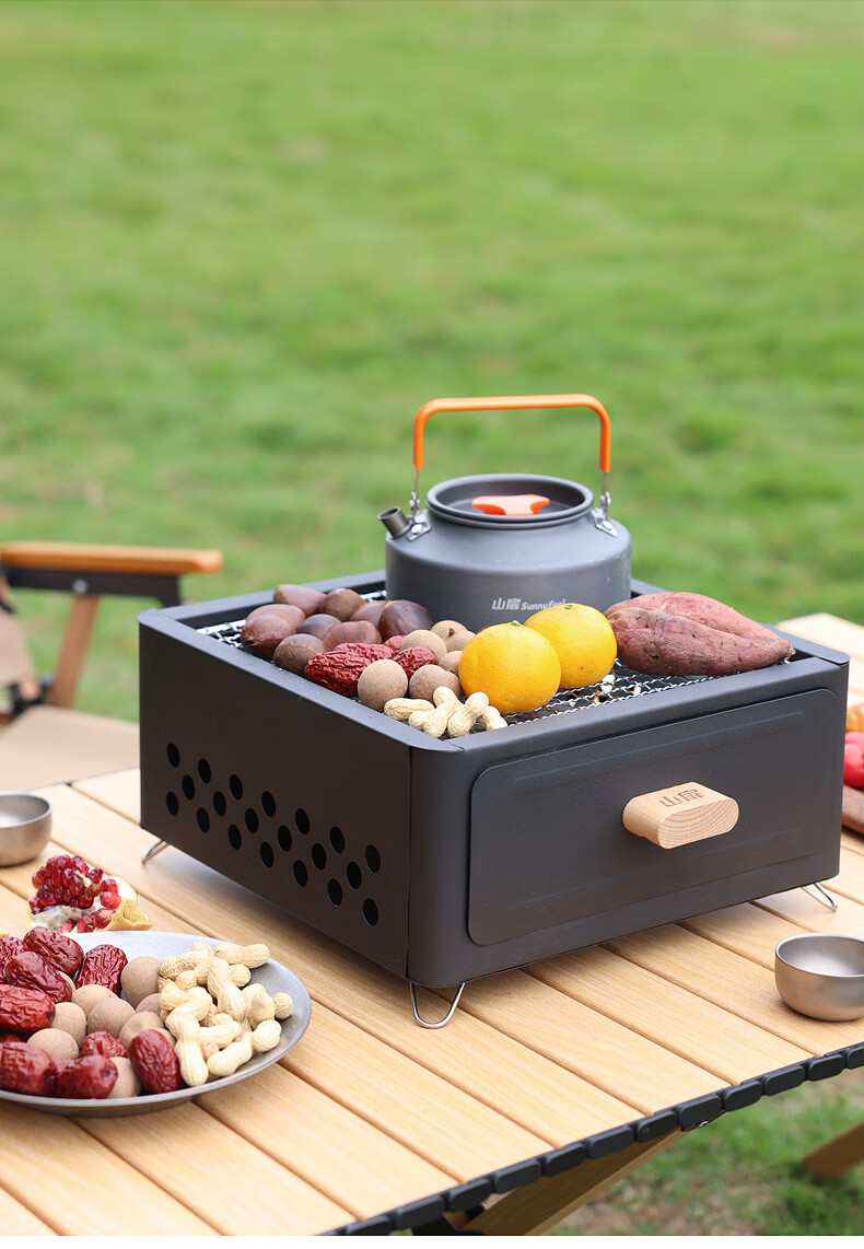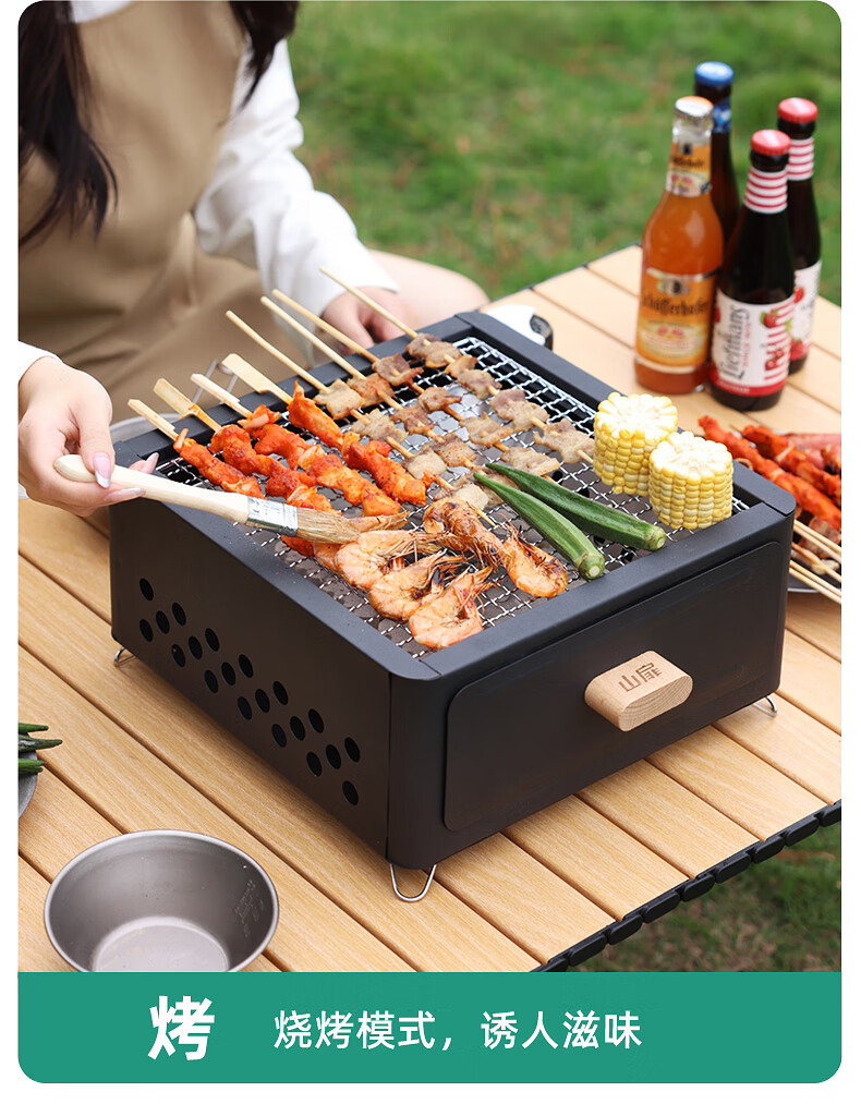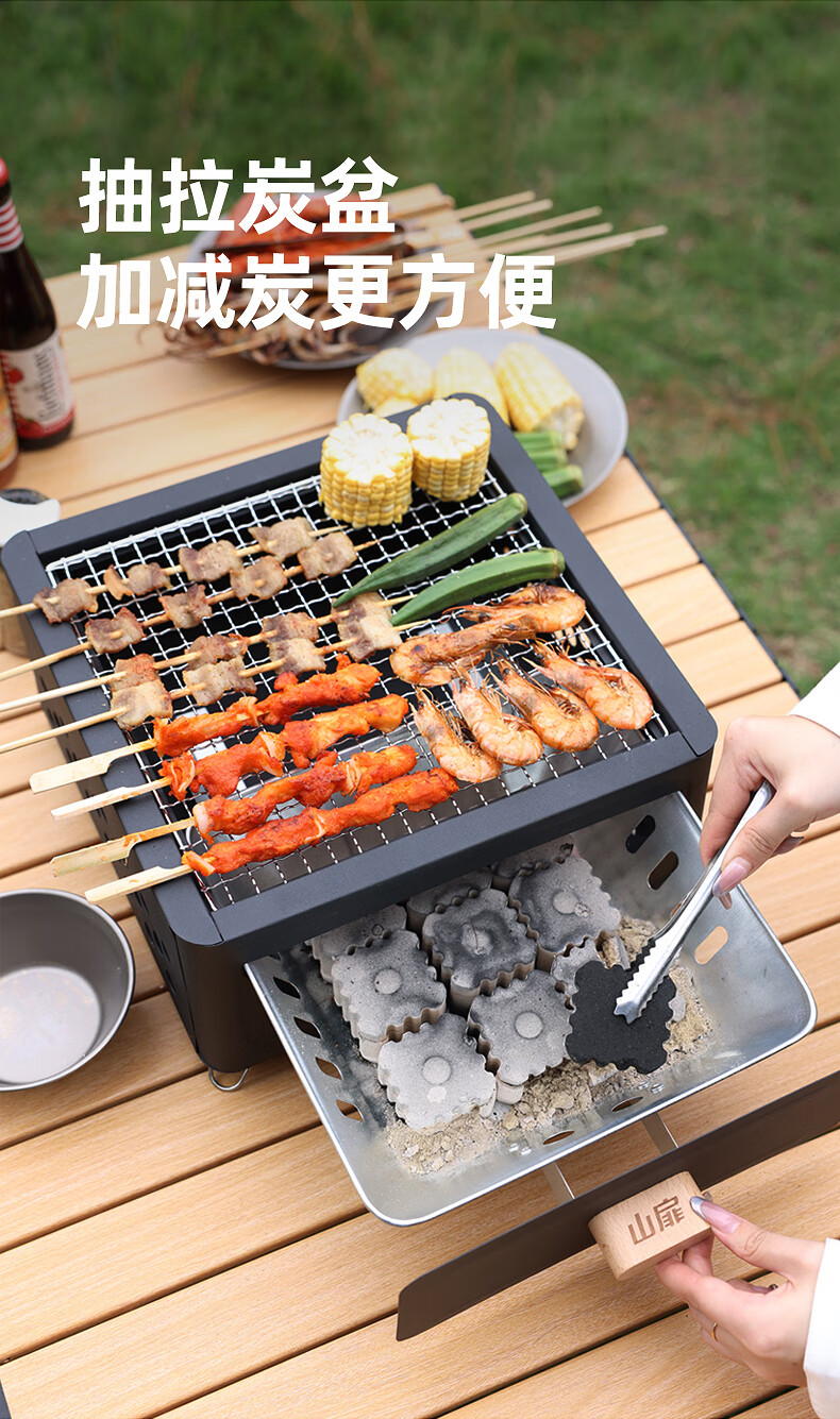 山扉山扉烧烤炉烧烤架户外围炉煮茶烤火炉套装烤肉炉子家用露营全套 曜石黑抽屉炉【自带烤网】