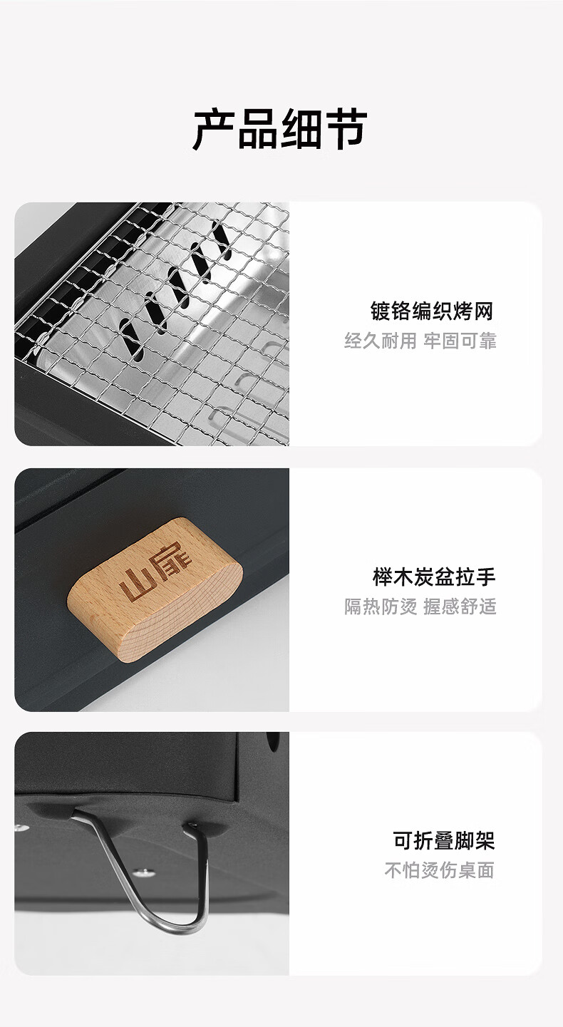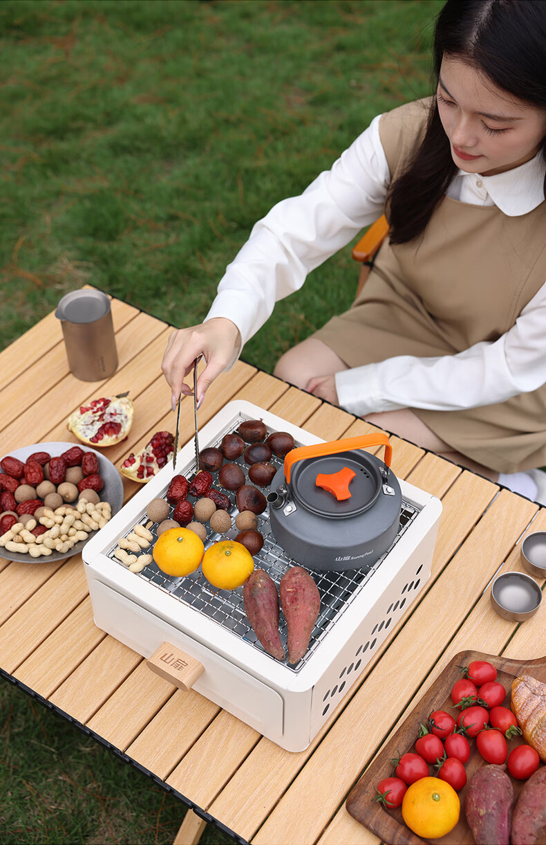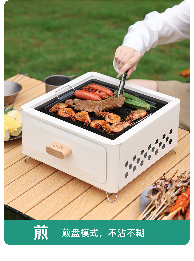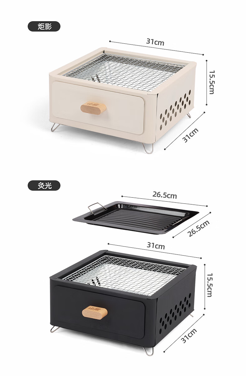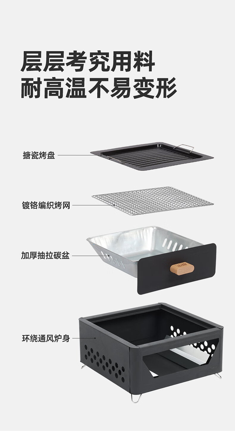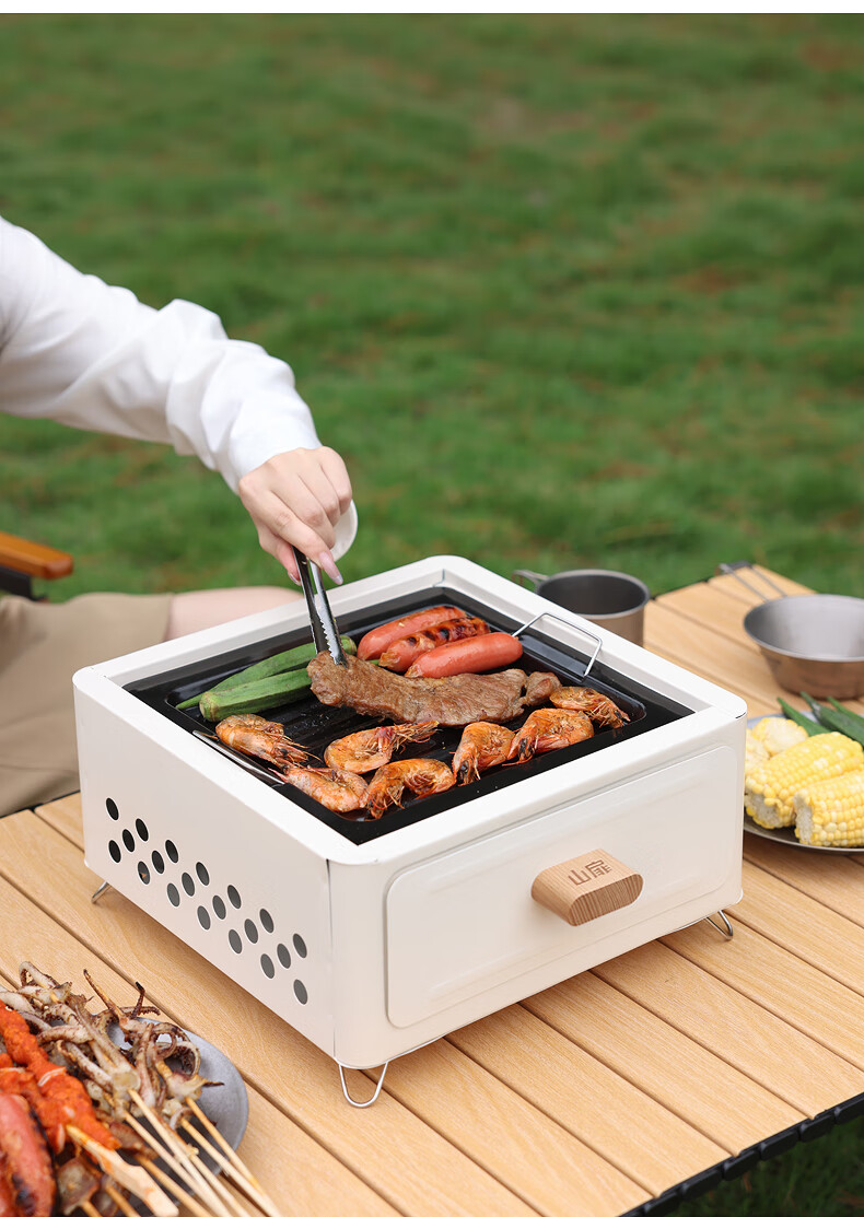 山扉山扉烧烤炉烧烤架户外围炉煮茶烤火炉套装烤肉炉子家用露营全套 曜石黑抽屉炉【自带烤网】