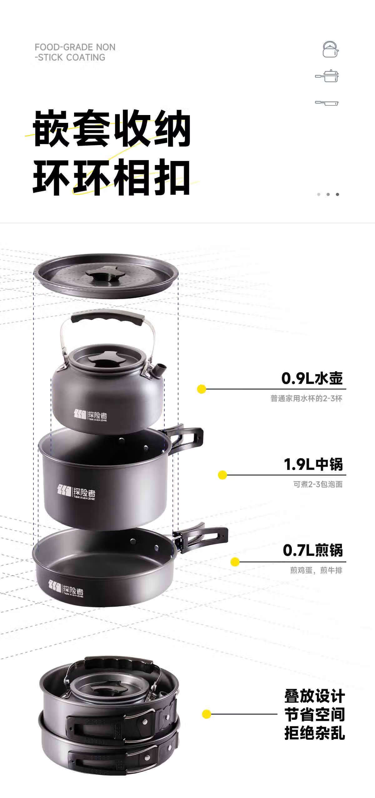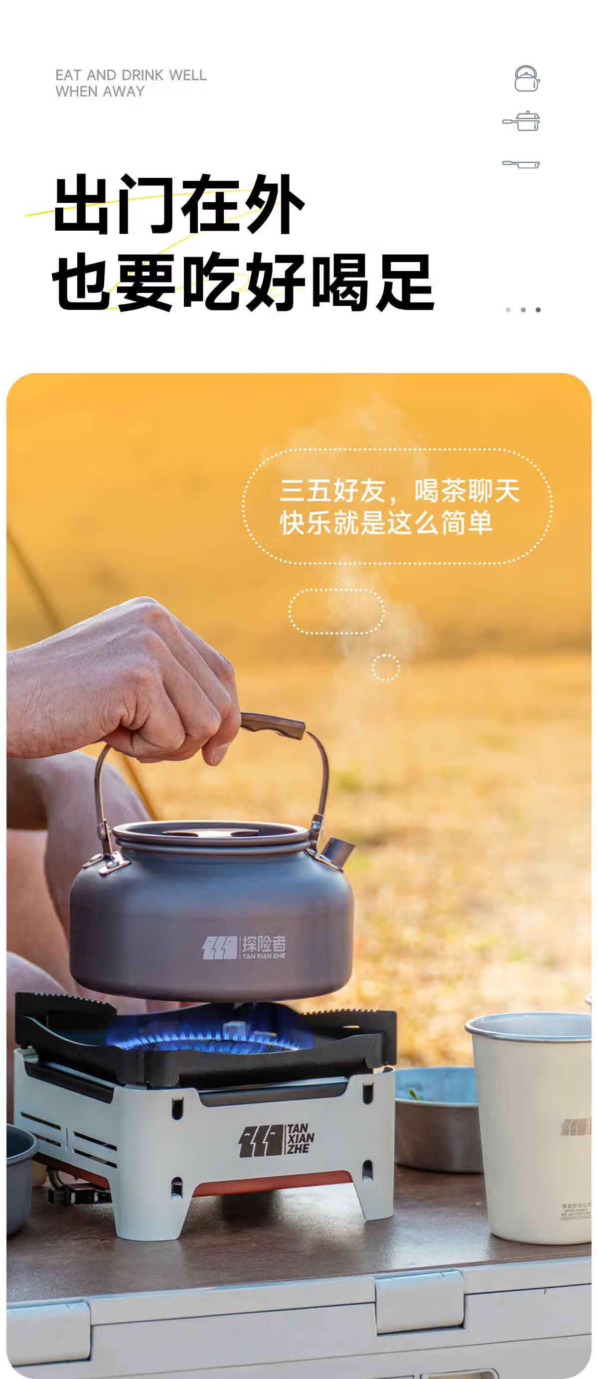 探险者(TAN XIAN ZHE)露营烧水壶户外烧水壶食品级铝材烧水壶不锈钢水壶露营钛化水壶 【304不锈钢】0.8L水壶