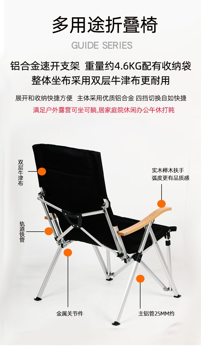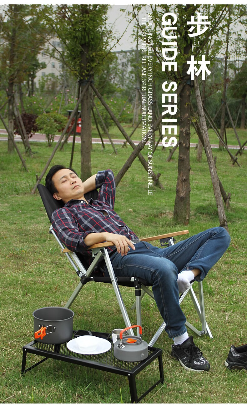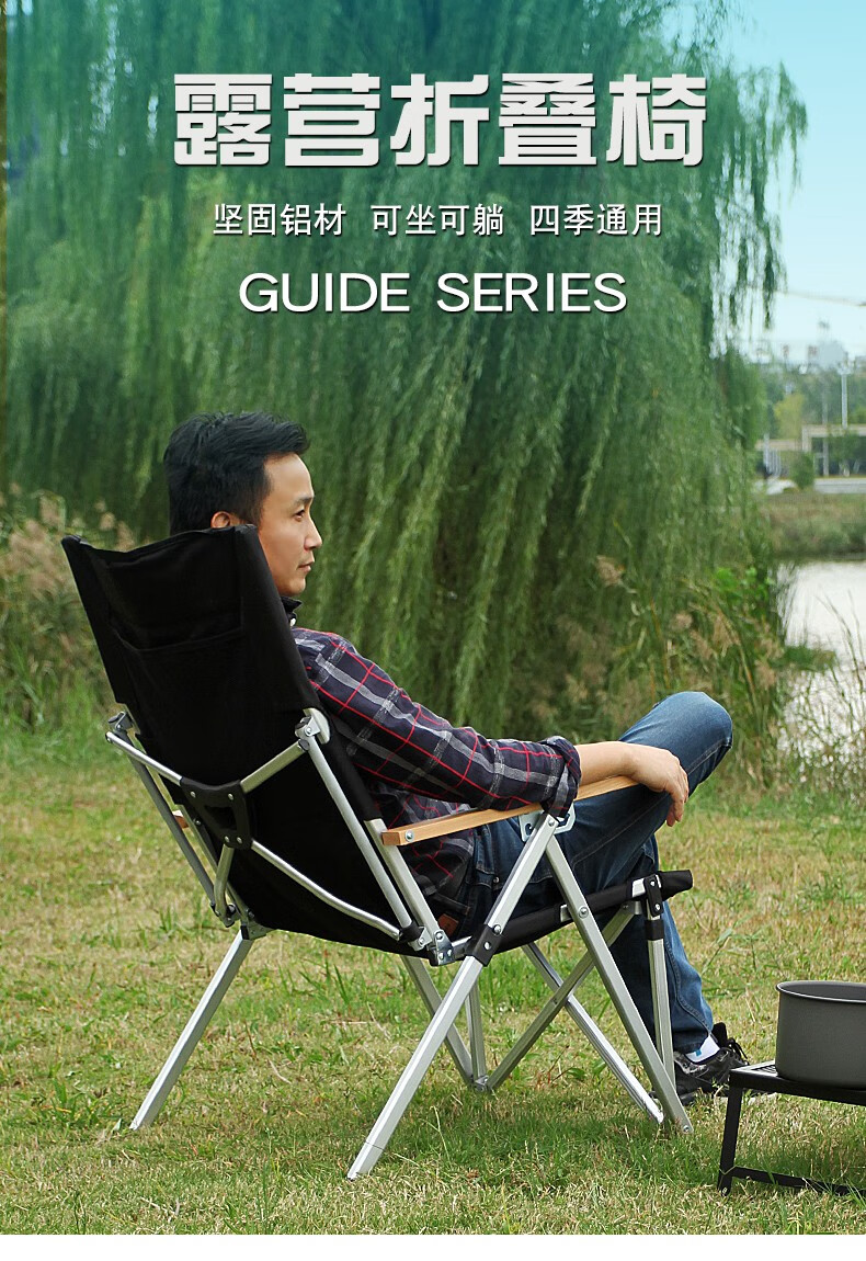 Guide Series户外超轻折叠躺椅露营沙滩椅钓鱼椅午休椅铝合金档位调椅 铝合金靠背椅 四挡调节 黑色