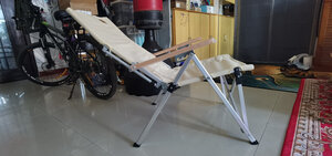 质量很好,收放容易,不绣钢脚架,重量轻,稳固,二百斤坐下都无问题,可调节四档,可坐可躺,出外玩好方便,一分钱一分货,比便宜点的好多了。
