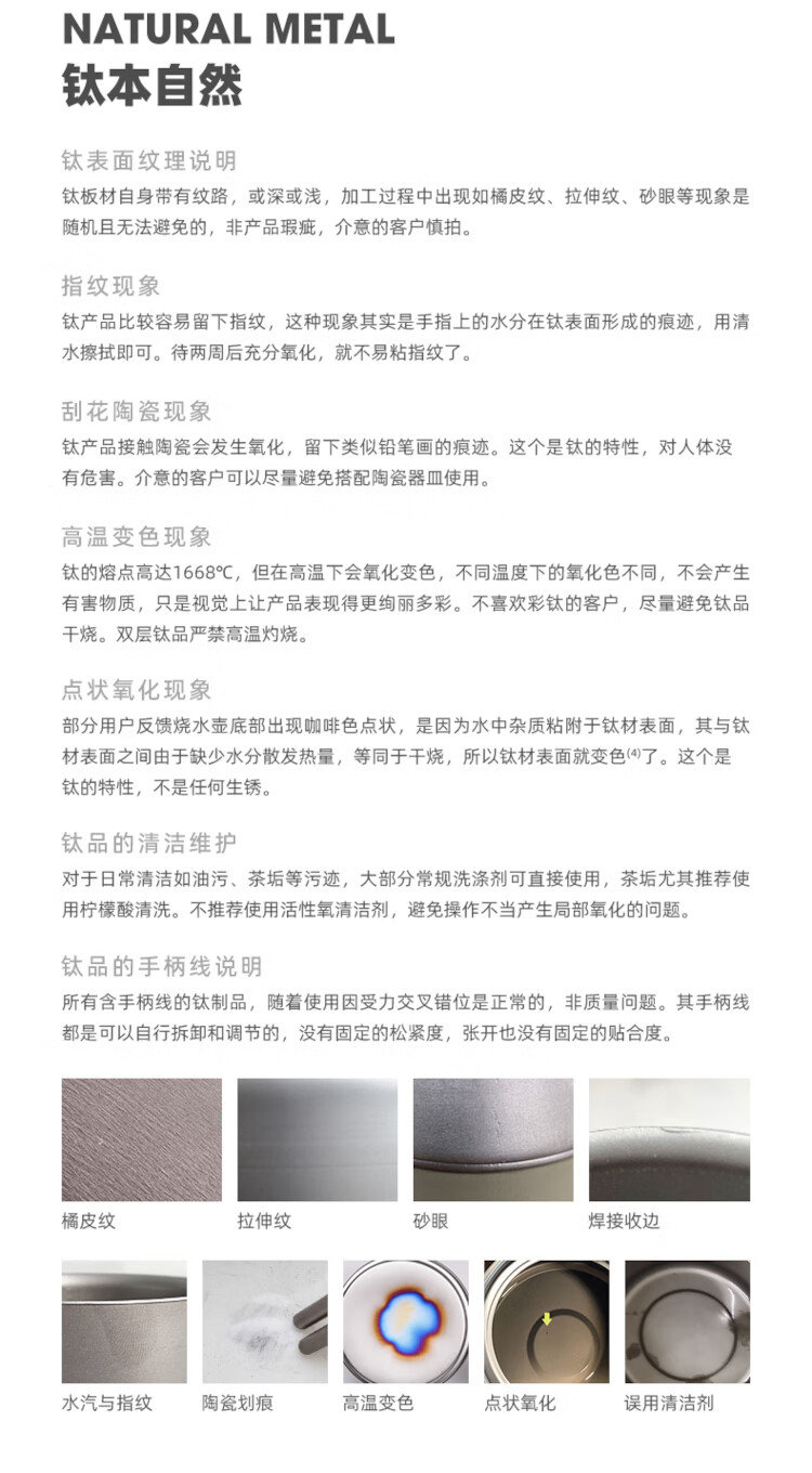 第三次买这牌子的钛杯,第一个用了3年拿去茶渍的粉直接倒杯里加热水。量大了涂层泡掉一些。以后要先在别的容器溶化再洗有涂层的物品。这次活动价格心动就买了同款,手柄有点问题,被我弄好了。